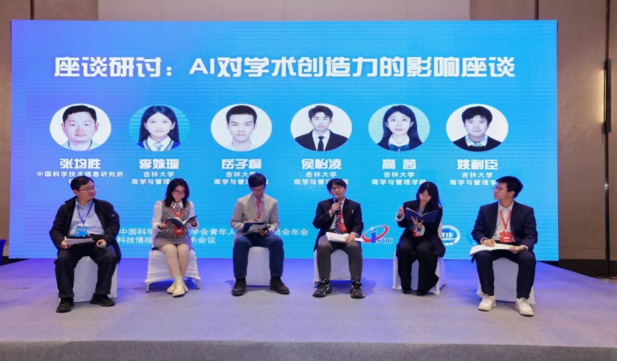 中国科学技术信息研究所张均胜研究员主持第二轮座谈环节,本环节也是此次会议的重要创新,由员工自主设计完成。伟德官网博士研究生李姝璇、岳子桐,硕士研究生候怡凌、高茜,本科生姚耐臣围绕“AI对学术创造力的影响”话题,通过“角色扮演”依次从读者、技术应用开发者、论文撰写者、期刊出版商以及政策制定者5个视角展开深入研讨,展现了青年学者多维度审视前沿议题的批判性思维与蓬勃的创新活力。