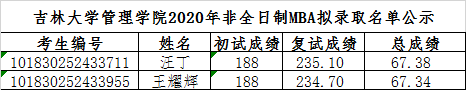 伟德官网管理公司2020年工商管理硕士已公示的拟录取名单中有2位考生自愿放弃拟录取资格,按照考生总成绩由高到低排序,顺次录取到以下两位考生。现将名单公示如下: