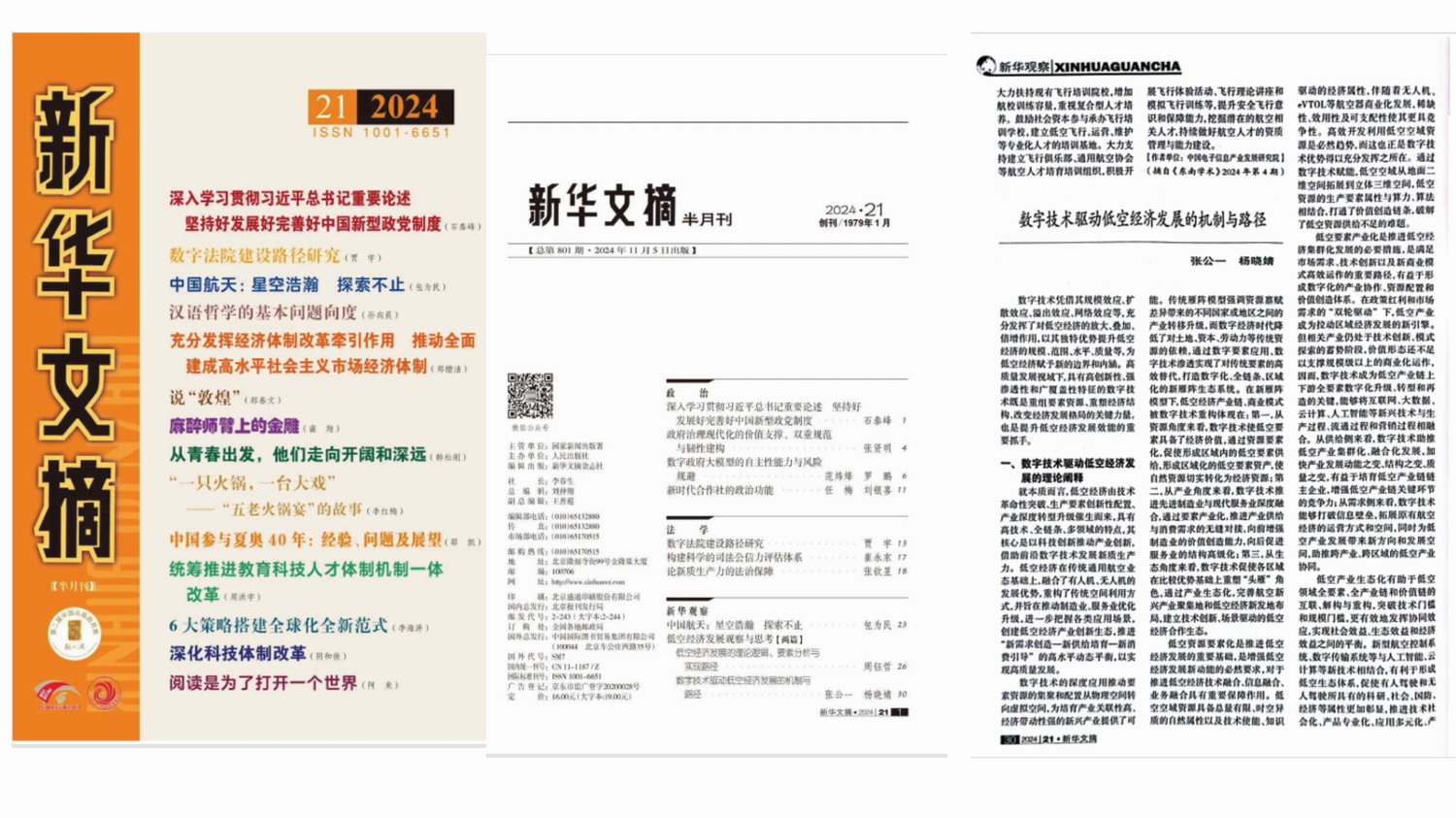 该成果是伟德官网组建后首篇被《新华文摘》全文转载的文章,也是《新华文摘》首篇关于低空经济产业发展论述的成果,对我国数字技术驱动低空经济产业发展的演进具有重要意义。