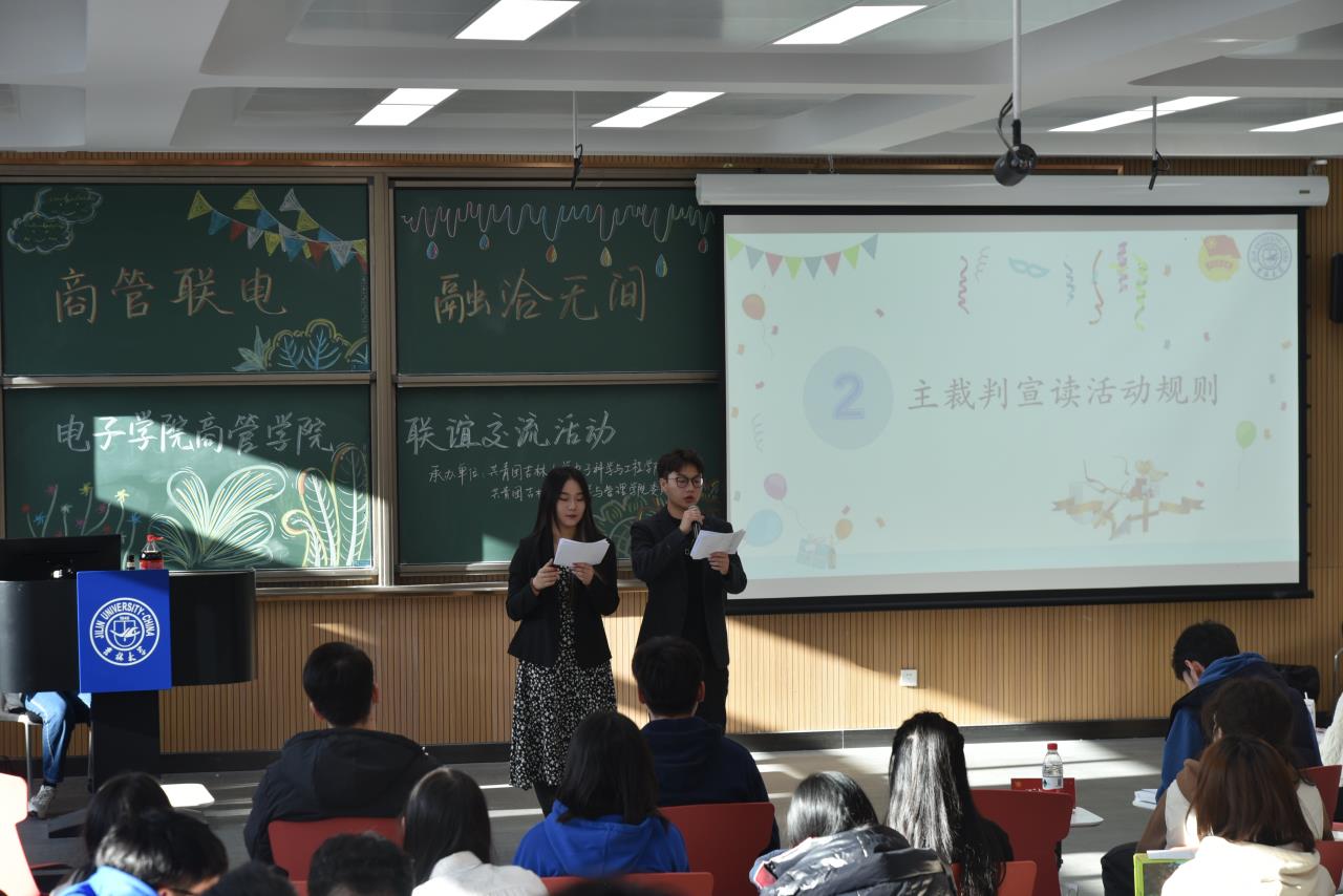 至此,活动圆满结束。此次活动不仅丰富了同学们的校园生活,还培养了同学们的沟通意识,学习了沟通技巧,提高了决策能力及团队协作能力。商管公司与电子公司联谊交流活动增强了两院同学的凝聚力,相信两院在今后的学习与工作中,能赓续两院情谊,共同进步,共同发展。