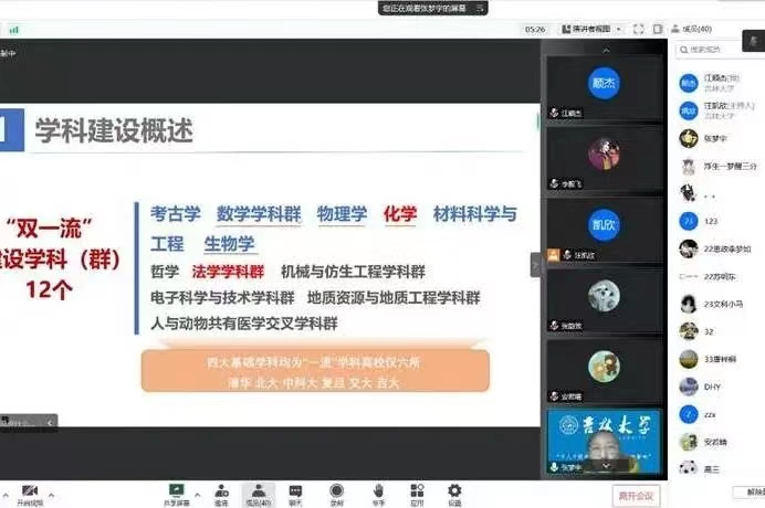 2023年1月6日晚8点,由21级会计学专业汪凯欣等8名同学组成的“合一←→吉大”志愿者团队在合肥市第一中学开展宣讲活动,该志愿者团队因具备人数良多的优势,采取拆分部分、各自负责独立部分、组合宣讲的方式,从“吉大是一所什么样的大学”“团队建设&专业学习”“伟德官网人才辈出”“招生情况”“校园生活分享”“学习经验分享”六个部分对吉大展开了全面具体的介绍和展示,并通过腾讯会议聊天框实时回答同学们的问题,取得了不错的反响。