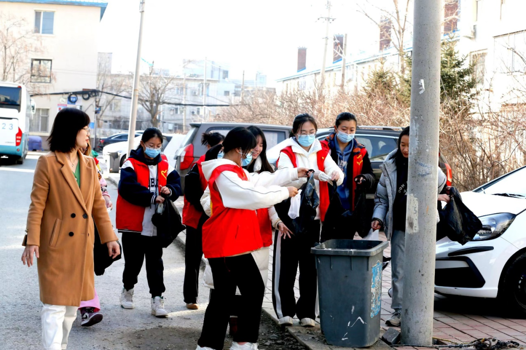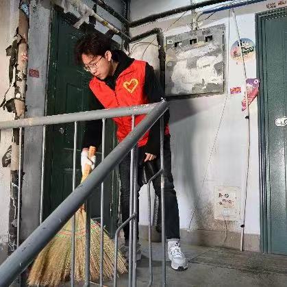 另一队在多位社区网格员的带领下,前往各老旧楼栋清理卫生。在清扫楼道的过程中,同学们使用扫帚认真打扫其中的灰尘,并将垃圾收拢至垃圾袋中,为居民生活区域的卫生做出了一份贡献。