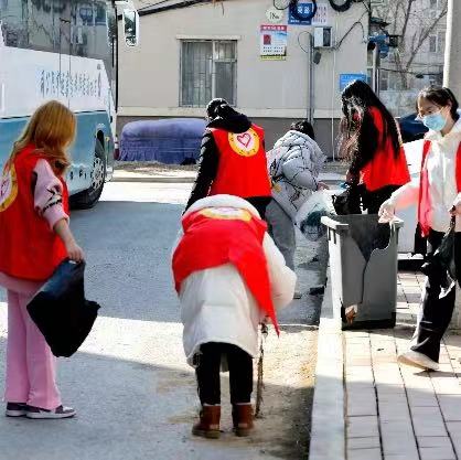 3月8日活动当天,在院团委的组织下,同学们身穿红色马甲,乘车来到了南湖街道二二八社区,参与了在附近花园捡拾垃圾、清扫楼道等志愿服务。