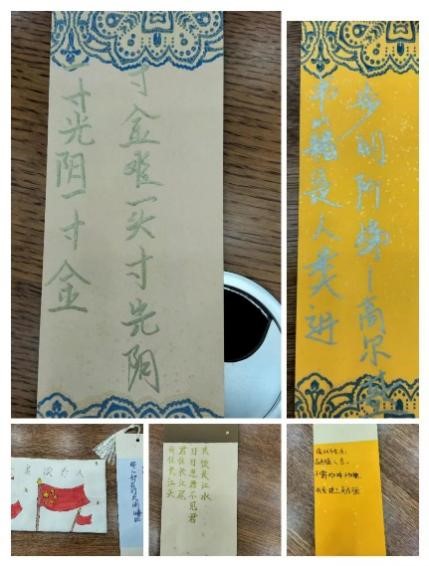活动最后,在场的同学们在志愿者的协助下共同制作了自己喜欢的书签,并在书签上写上了激励振奋自己的话语。
