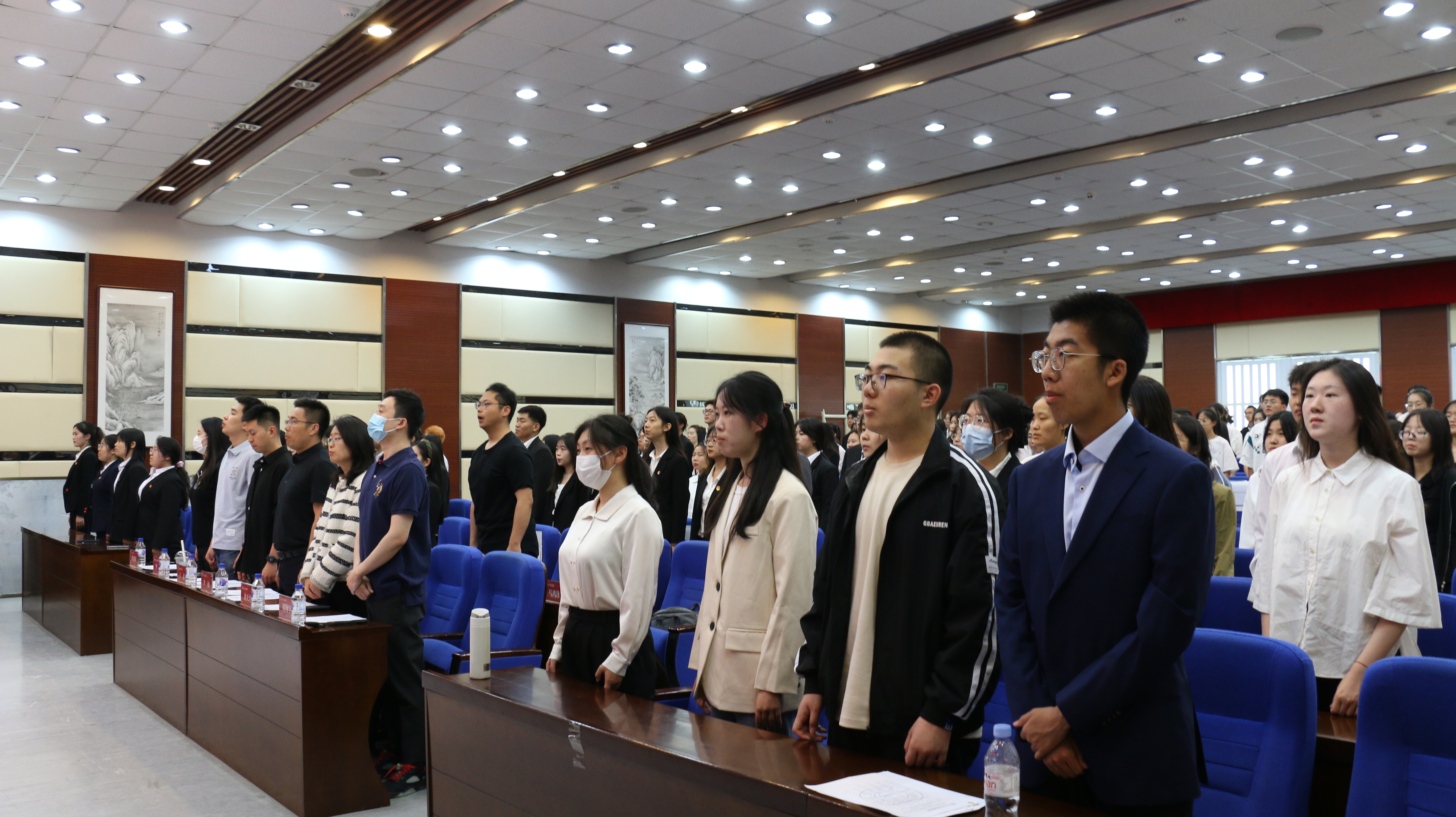 大会最后一项,大家全体起立,齐唱中国共产主义青年团团歌,五月花海、初升太阳,青春奋进的主旋律萦绕在同学们的心间,商管的未来,必定再续辉煌!就此,大会正式圆满结束。
