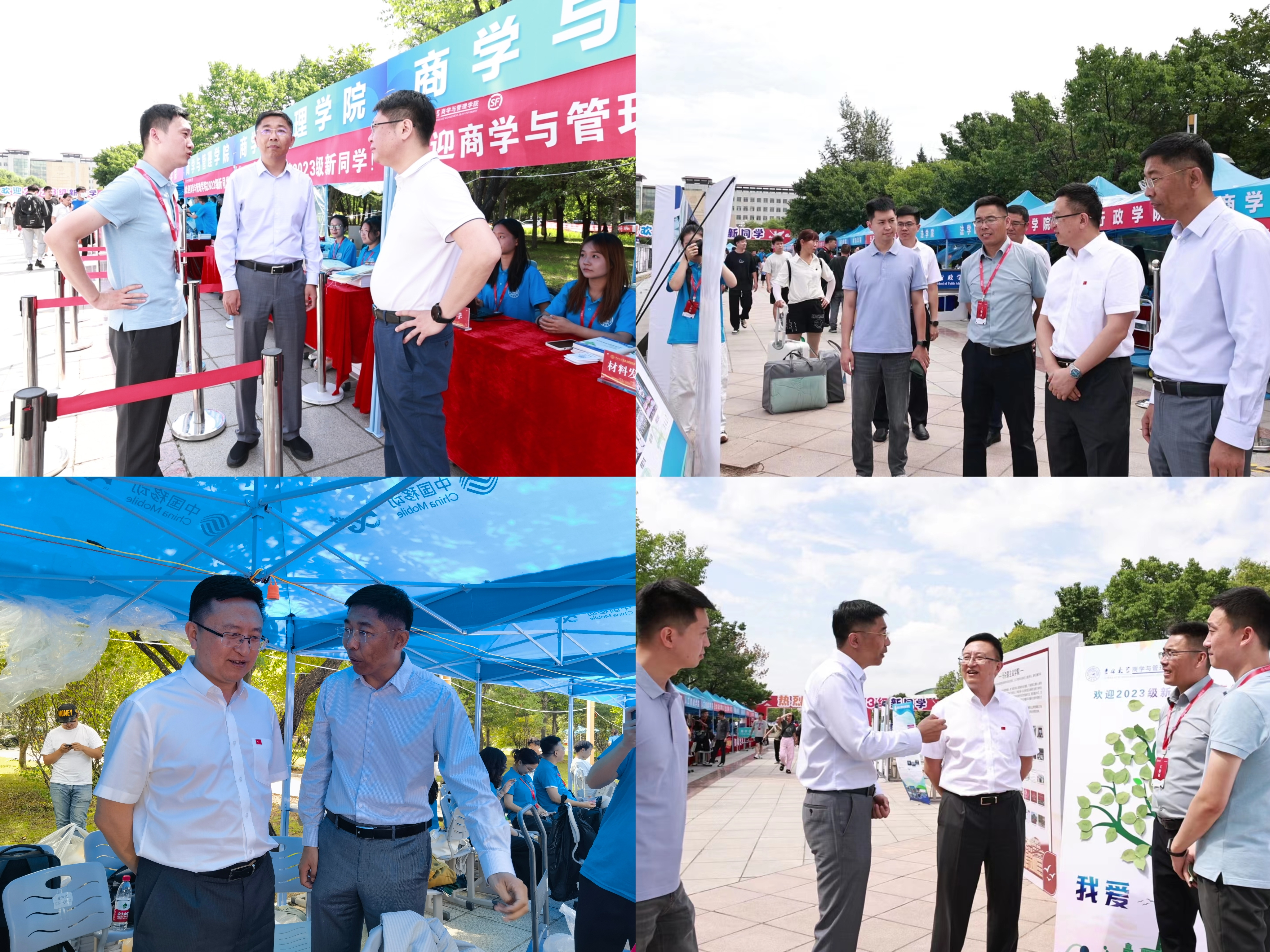 2023年8月25日,2023级本科生迎新工作正式开始,商学与管理公司党委副书记兼副经理李帅、新生辅导员刘翔宇、罗小杰,员工工作办公室丁越、刘天目、陈卓、曲盛妍、李毓、贾奇达、禚传阳与迎新志愿者们早早在五月花广场集结完毕,对校园环境、新生接待工作、迎新系统等方面进行了全面的检查,以最饱满的热情和最贴心的关怀准备迎接来自祖国各地的商管新生。此次迎新,公司还采用了直播形式,方便新生及家长们随时了解迎新情况。