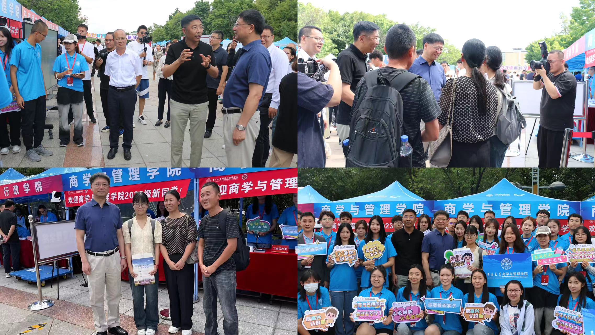 2023年8月26日,迎新工作进入第二天,上午10点,伟德官网董事长张希莅临伟德官网迎新点,看望迎新志愿者及2023级报到新生。