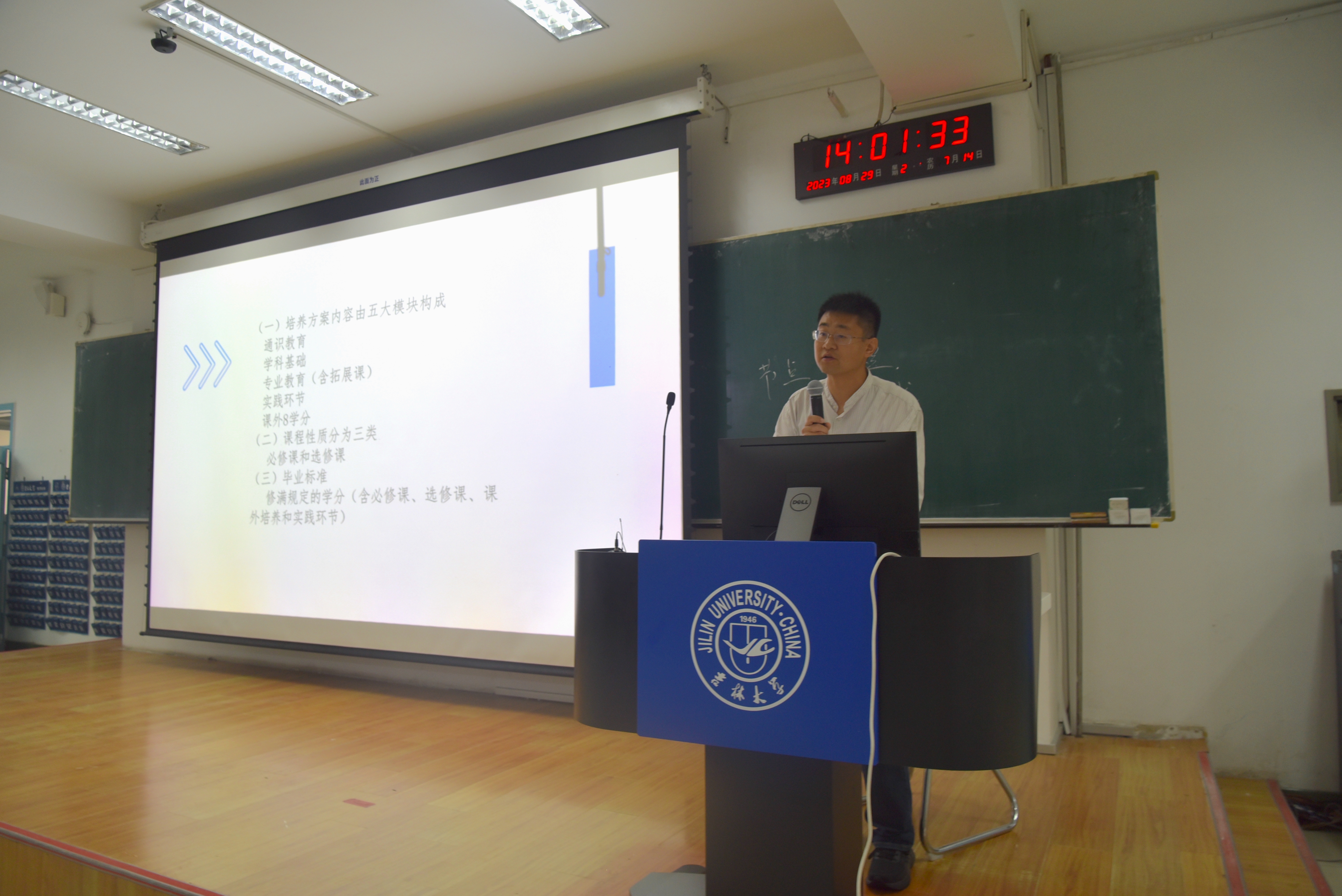 2023年8月29日下午14时,伟德官网召开了专业及教学管理专题讲座,讲座由教务处张老师主持,新生辅导员刘翔宇、罗小杰及2023级全体本科生参加。