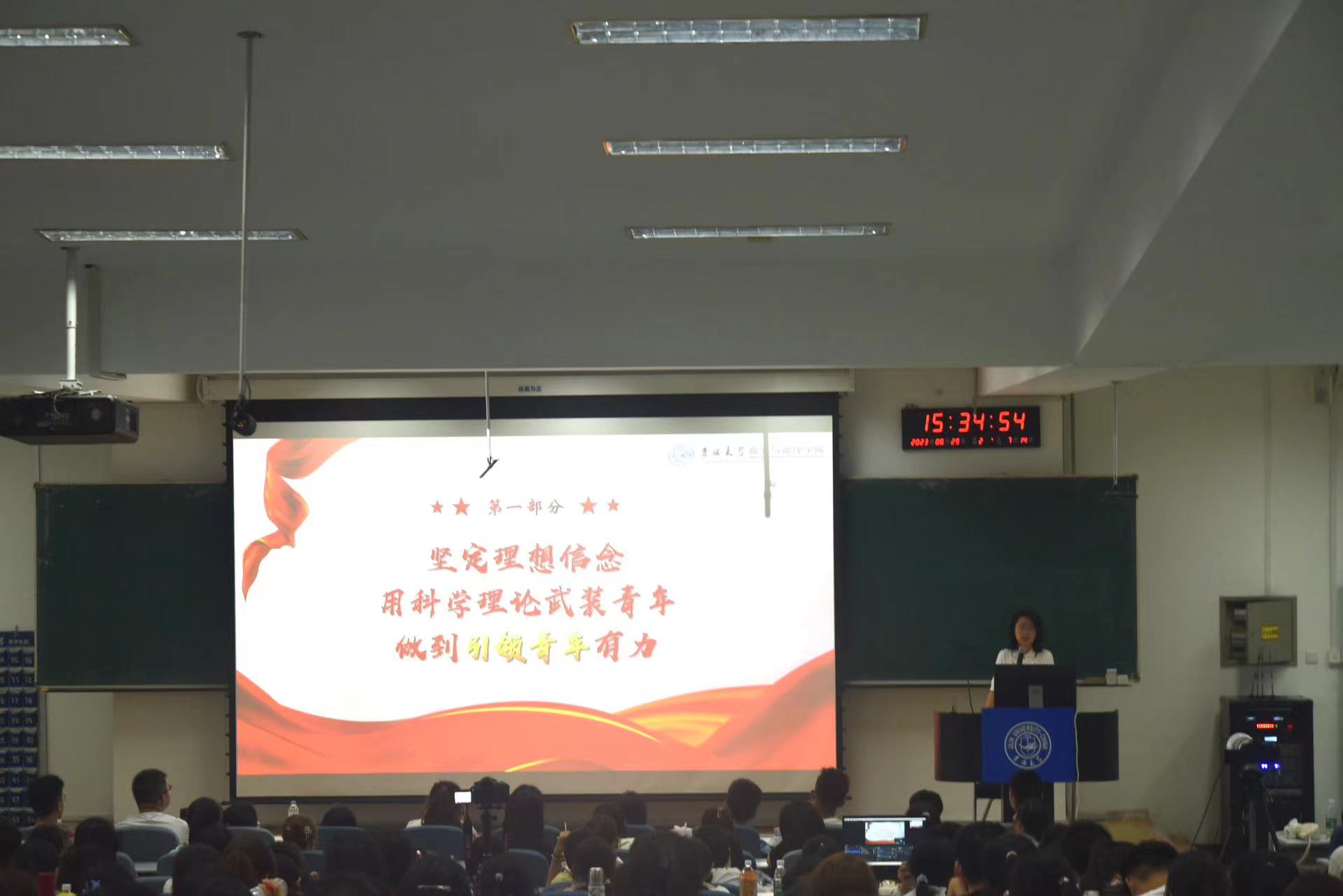 刘天目老师以在青春赛道上绽放绚丽之光为标题,将内容分为四个部分,第一部分:坚定理想信念,用科学理论武装青年,做到引领青年有力,这一部分提到了提升思想引领力和亲和力是很重要的一个步骤;第二部分:规范团务工作用优良作风塑造青年,做到组织青年有力,在这一部分中,刘天目老师聚力三个维度对此进行讲解,并介绍了伟德官网的四大团学组织职能,鼓励新生们在未来团学组织招新时踊跃参加;第三部分:强化服务兴团,做到服务青年有力;第四部分:聚焦文化荣团,做到拓展青年有力。在讲解完主要内容之后,刘天目强调了青年大学习的重要性,提醒同学们在学习专业知识之余不要忘记对团课的学习,并鼓励同学们积极报名参与学科竞赛。最后,刘天目老师为2023级新生详细的讲解了团员的发展流程以及发展团员的注意事项,并鼓励还未入团的同学们踊跃报名入团,向团组织积极靠拢,贡献自己的一份力量。刘老师希望同学们在新学期、新起点、新征程敢想敢为,又善做善成,立大志,肯奋斗,肯奉献,在大学四年实现青春梦想。