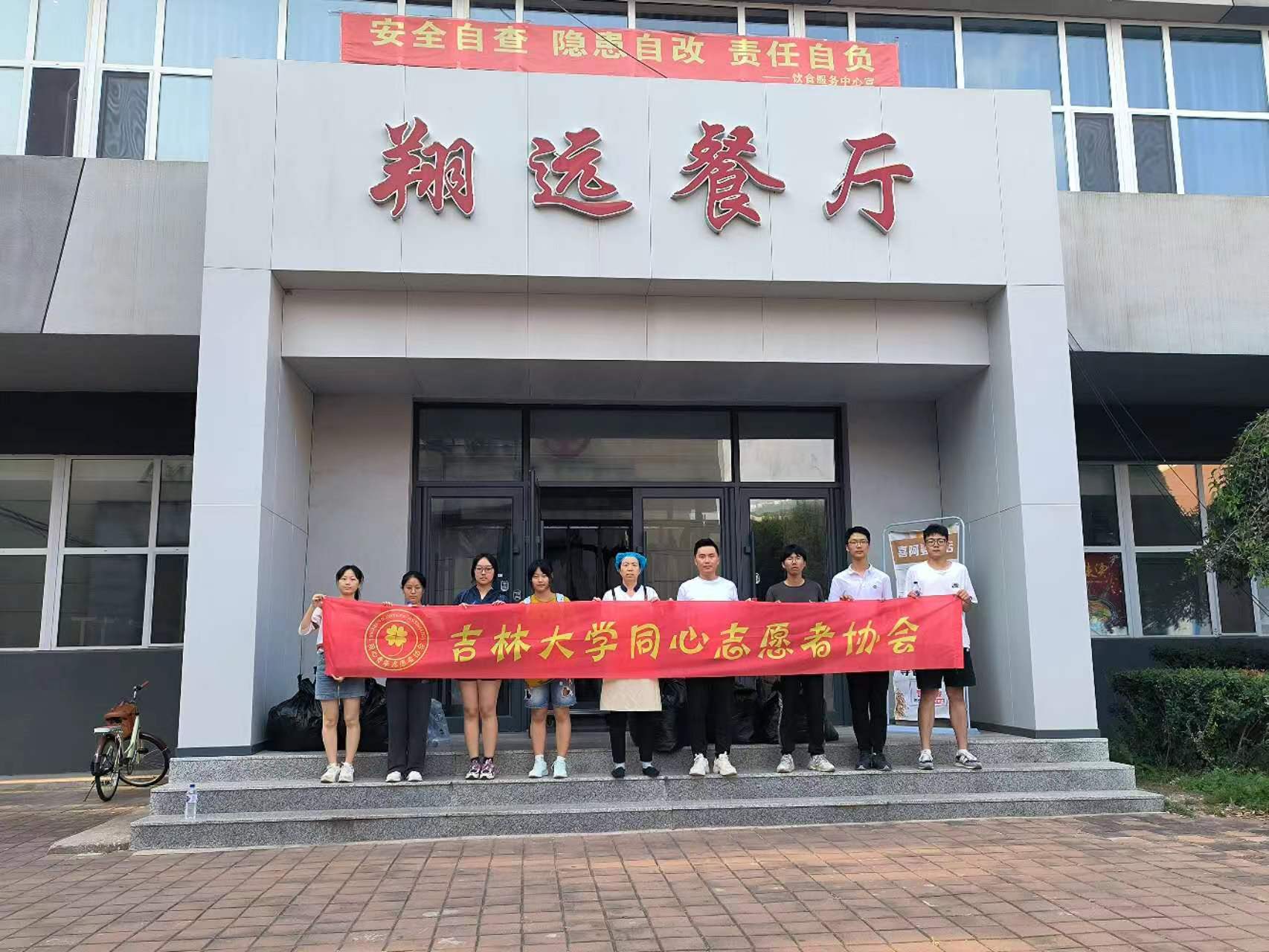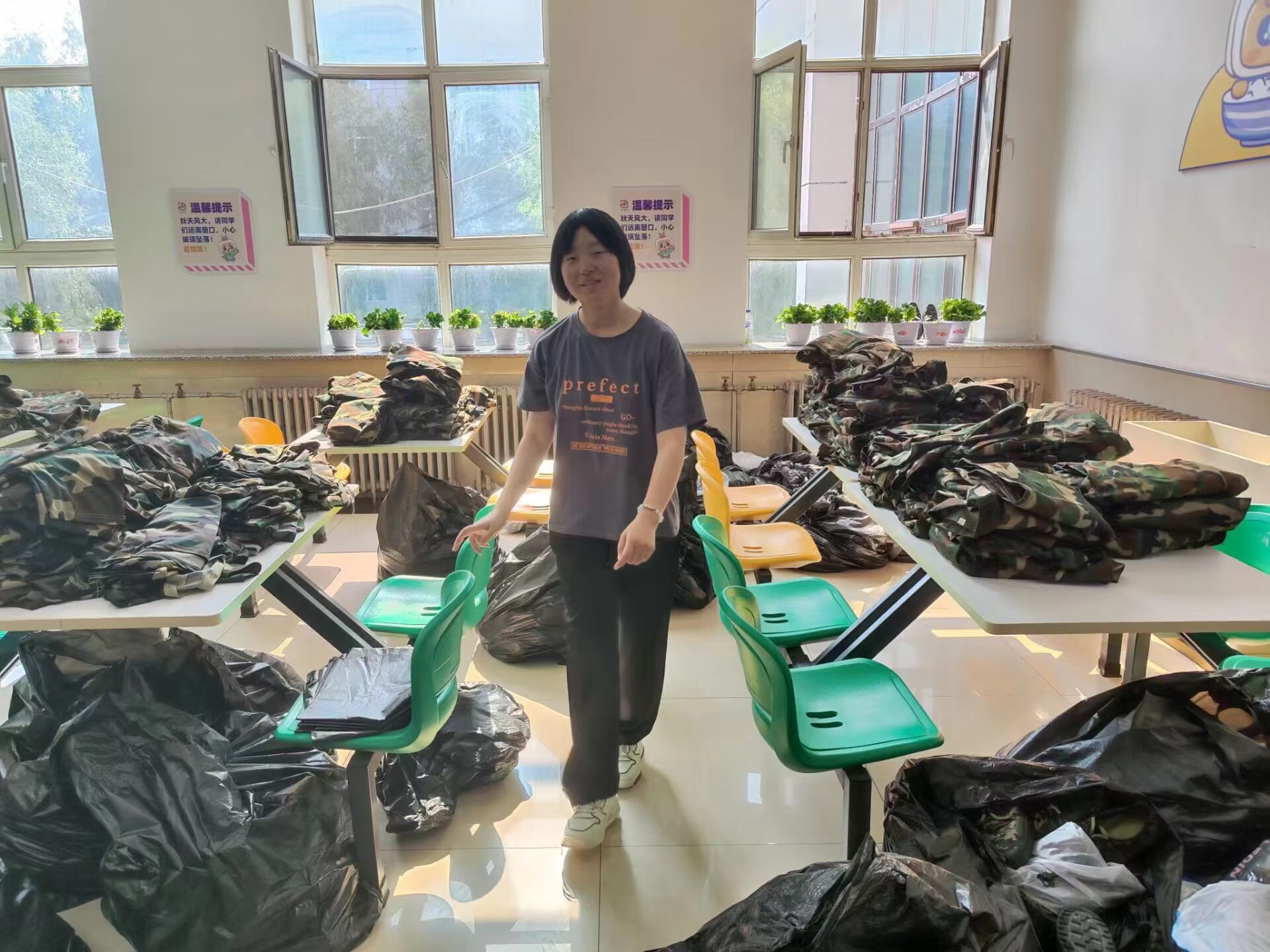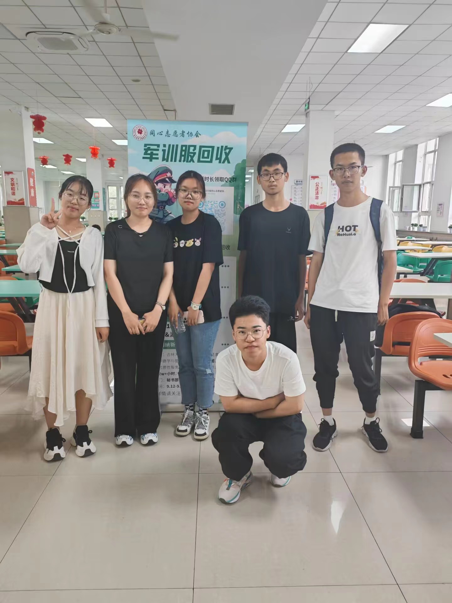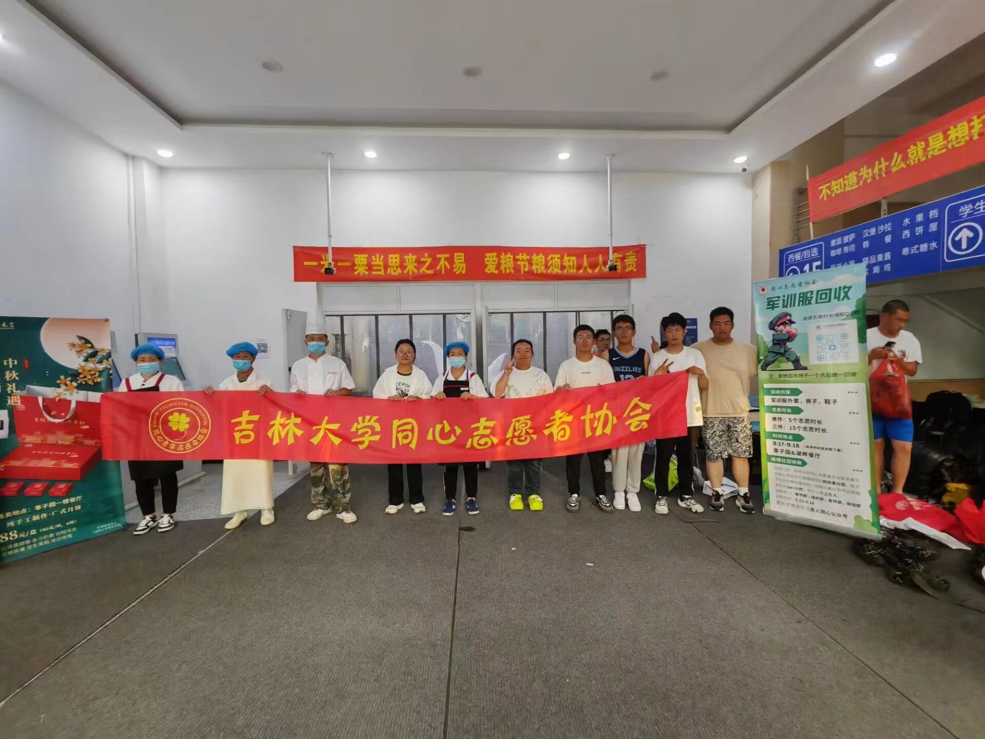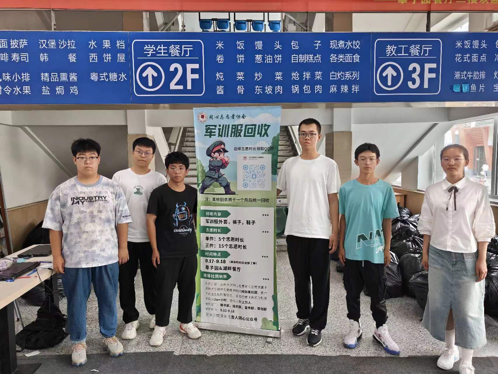 为弘扬勤俭、节约的美德,践行“绿水青山就是金山银山”的绿色生活方式,传递“奉献、友爱、互助、进步”的志愿者精神,在院团委的支持下,伟德官网同心志愿者协会于2023年9月16日至9月17日在翔远餐厅、莘子园餐厅以及湖畔餐厅举行了军训服回收活动,将回收的军训服捐赠给食堂的工作人员。