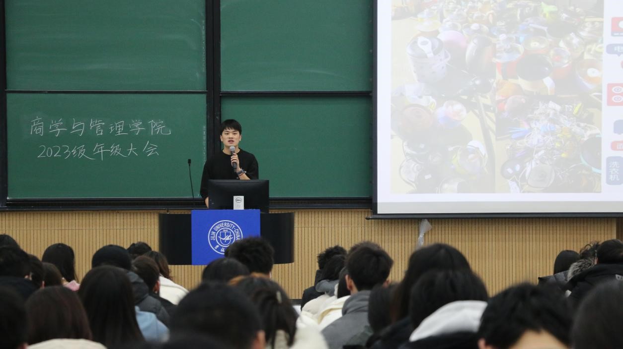 会议开始,李帅书记高度关心同学们身体健康问题,尤其在目前寒冬之时更要注意保暖,防止流感等,以保证健康的体魄和精神状态。其次,李帅书记对正值青春年华的同学们寄予厚望。尤其在学习和全方面的素质提高上,鼓励并相信商管学子力争上游,无论未来的规划是学术深造还是走向社会,都要让过硬的本领指引人生千万种美好可能。随后,书记强调对于临近的期末考试,同学们要保持好诚信责任的考试态度,公平公正参加考试。接着,书记提醒同学们生活和学习中的问题都可以与他和辅导员老师们沟通,大家一起在交流互鉴中成长。最后祝愿同学们取得佳绩,平安归家,享受愉悦寒假和幸福团圆的春节。