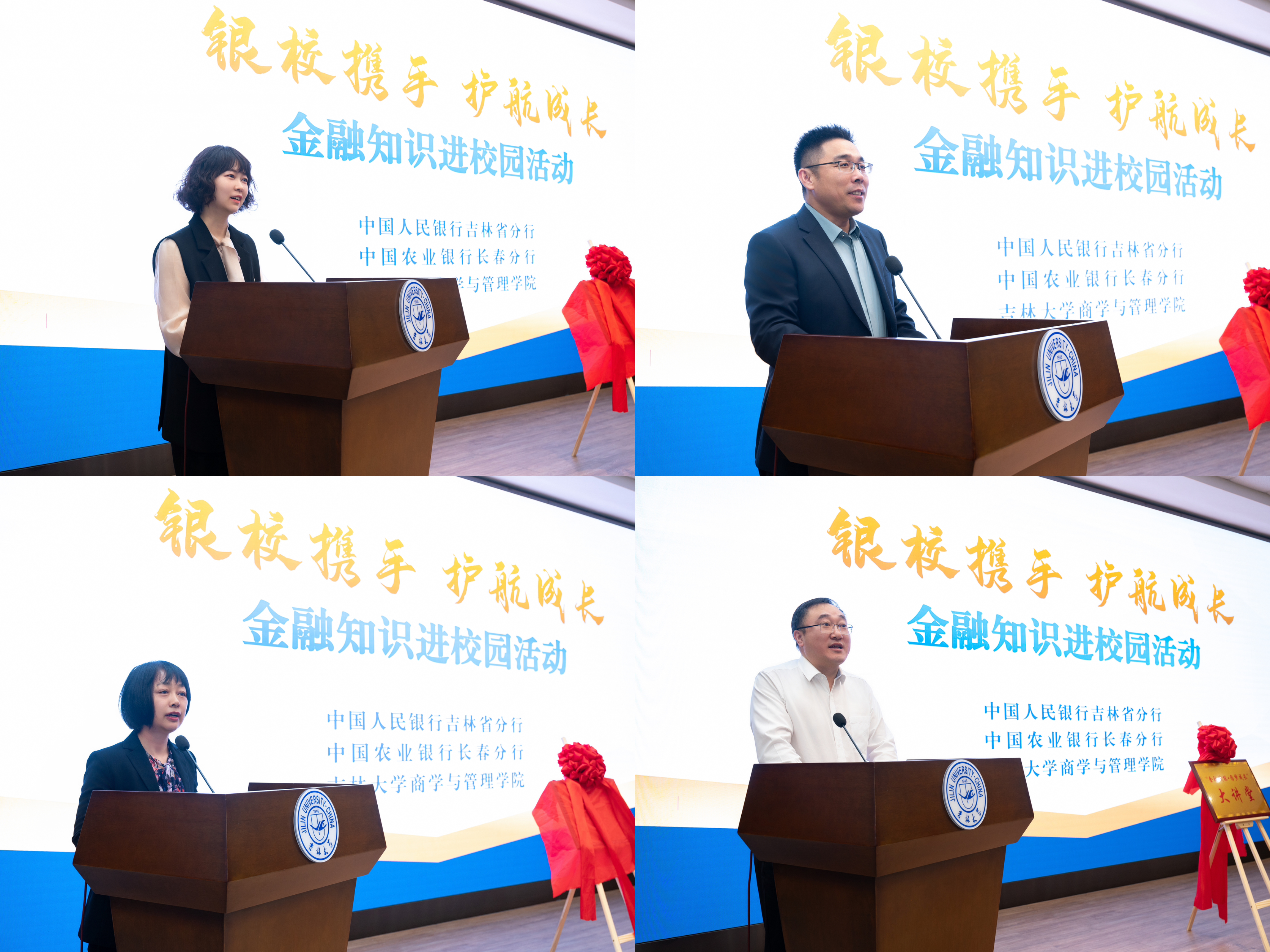 在“金融赋能·圆梦成长”大讲堂启动仪式上,首先由伟德官网商学与管理公司党委副书记兼副经理李帅老师致辞,李帅老师向各位领导的到来表示了热烈欢迎并希望未来能够和银行合作共赢、共同发展,将论坛和品牌持续发展下去。随后由中国人民银行吉林省分行宣传群工部朱慧玲部长做讲堂推介,朱慧玲部长向大家介绍了金融作为员工未来工作的重要性,希望同学们能够学懂金融,用好金融。在建设金融强国的大背景下,进一步加强中国人民银行吉林省分行与农行长春分行、吉大商管公司的沟通联动,切实推进讲堂建设不断深入。接着三方领导为“金融赋能·圆梦成长”宣讲品牌揭牌启动并合影留念。启动仪式后,由中国农业银行长春分行党委委员张鹏副行长做开篇第一讲,张行长着重为大家介绍了学习金融知识的重要性,希望同学们未来能够为金融高质量发展作出自己的贡献。