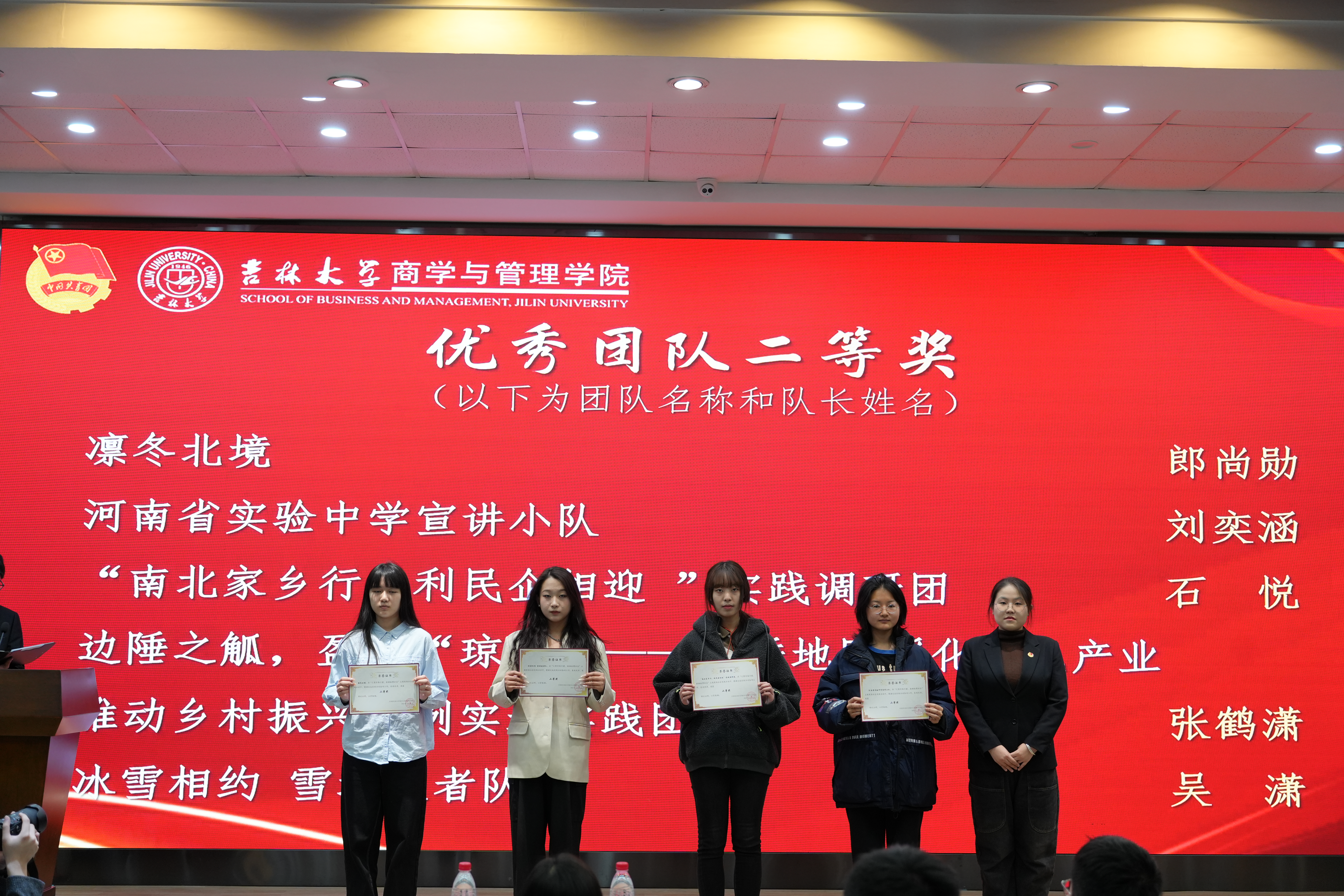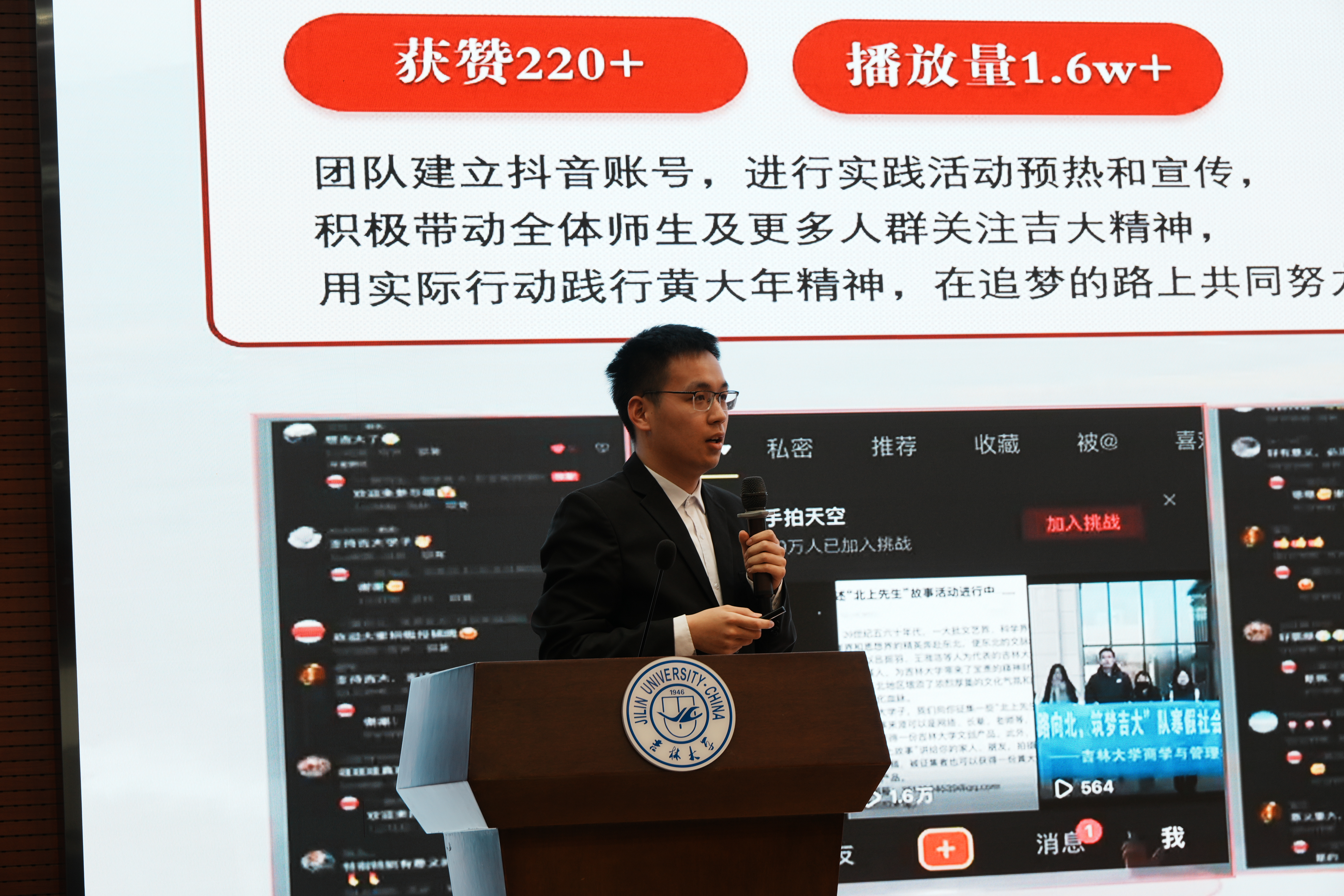 大会第三项,获奖队伍代表刘家邦、梁楷悦、邵桂含、万锐捷依次上台,分享了他们在社会实践活动中的经验和感悟。他们分别从不同的角度讲述了自己在实践中的所见所闻、所思所感,以及如何将理论知识与实践相结合,解决实际问题。他们的分享不仅让在场的同学们深受启发,也为今后开展社会实践活动提供了宝贵的经验。