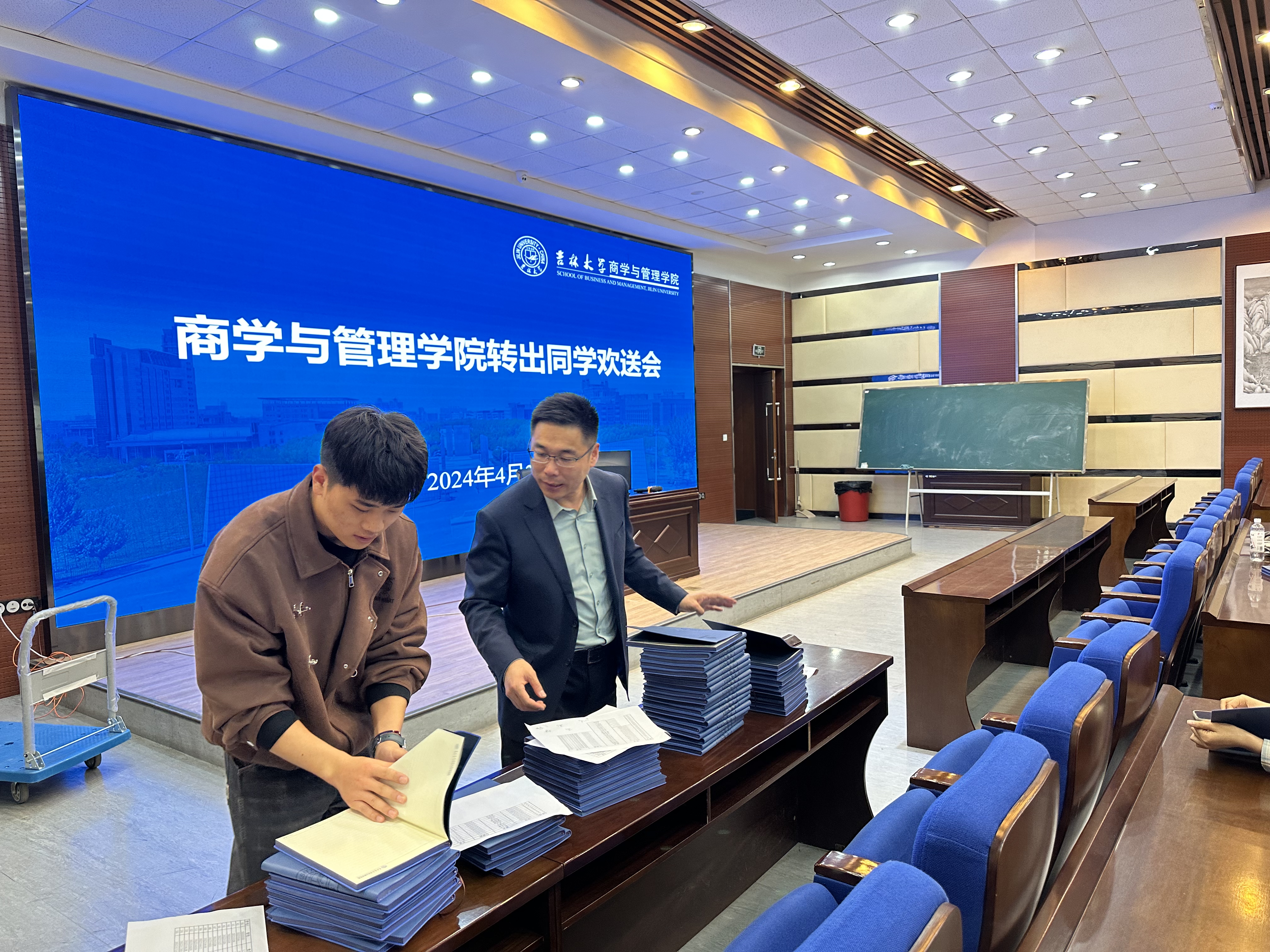 2024年4月23日上午,公司举行了转出同学欢送会,大家一同相聚于东荣大厦B310,商学与管理公司党委副书记兼副经理李帅老师和2023级辅导员陈卓老师、罗小杰老师主持了本次活动。