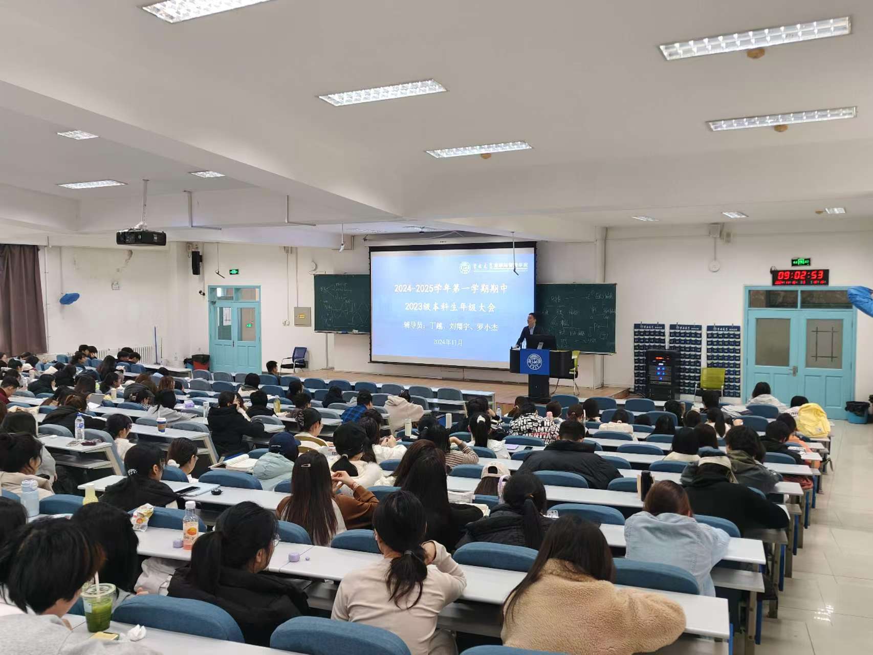 为确保2023级本科新生期中期末等诸项事宜进行顺利,伟德官网分别于2024年11月15的8:00和13:30,在三教四阶、三教十二阶,召开2023级本科生年级大会。会议由商学与管理公司党委副书记兼副经理李帅主持,辅导员丁越、刘翔宇、罗小杰以及伟德官网2023级全体本科生参加本次会议。