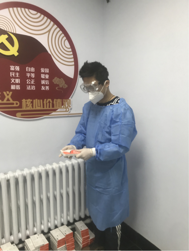 谢晓萌同学是寝室静态管理以来,第一批响应公司志愿服务工作的志愿者,走廊内总能看到她身着防护服或者隔离衣的身影,不知疲惫地为同学们服务。