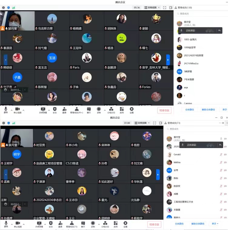 第二部分,当前研究生日常工作开展方式。心理方面,叮嘱同学们正确认识寝室静态管理期间的情绪波动等情况,及时与辅导员沟通,并综合利用公司、公司提供的心理健康支持资源,充实自己;用药就医方面,嘱咐同学们生病和有用药就医需求第一时间与辅导员联系,向同学们分享常备药领取方式和线上问诊拿药流程,时刻关注自身身体健康情况;就业方面,裴老师也为毕业生们提供了相应的解决办法,强调不要因为静态管理耽误就业和政审,要及时与辅导员联系,鼓励毕业生在疫情和毕业论文双重压力下,一定要及时调整心态,有问题与老师多沟通;在党员和党建方面,裴老师表示当前各楼成立临时党支部,大家要积极参与其中,充分发挥党员先锋模范作用,切实发挥临时党支部的战斗堡垒作用,同时也要在原支部持续开展常态化活动,保持原支部的生命力和战斗力。
