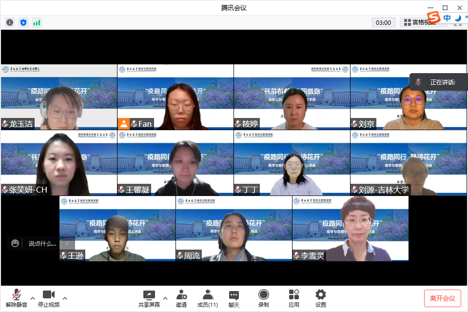 通过本次学术研讨,不仅加深了疫情期间导师和员工们的交流,还鼓励研究生对学术前沿的不断探索。李雪灵教授表示,现在正是疫情攻坚战的关键时期,我们一定要共克时艰、同心抗疫,整理好自己的心态,以更加积极的生活和学习心态面对当前的疫情,坚持到最后一刻。吉林终有吉临时,长春定复往常春,在大家共同的努力下,我们必将夺取这场疫情防控攻坚战的胜利!