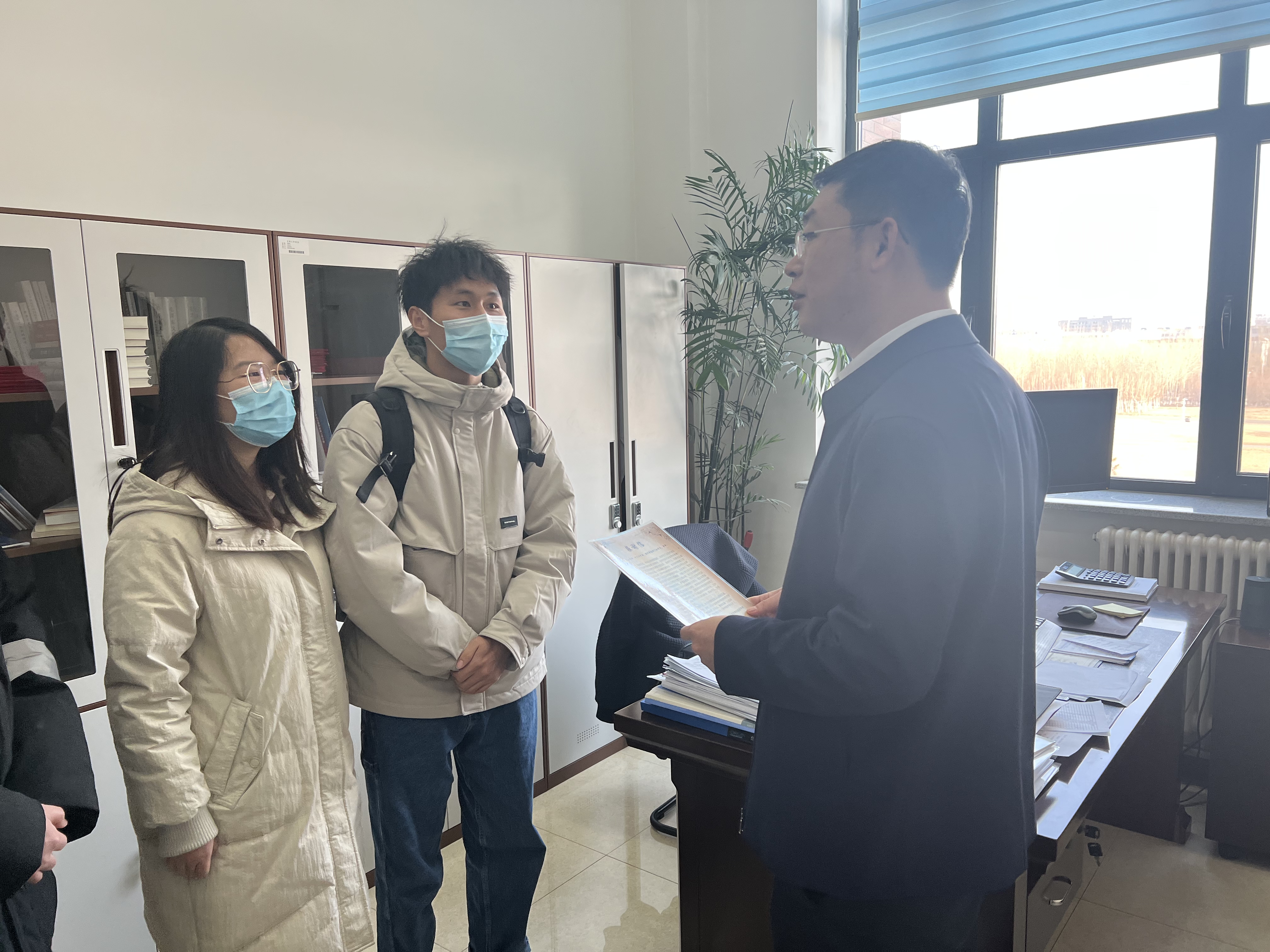 3月7日下午,伟德官网研究生代表马远航同学、张庭赫同学、贾乐同学一行前往鼎新楼,向研究生工作部赵玥部长及相关老师送上感谢信。感谢研究生工作部的各位领导、老师在寝室搬迁过程中对全院师生无微不至的照顾和帮助,研究生寝室搬迁工作进展顺利,师生非常满意。