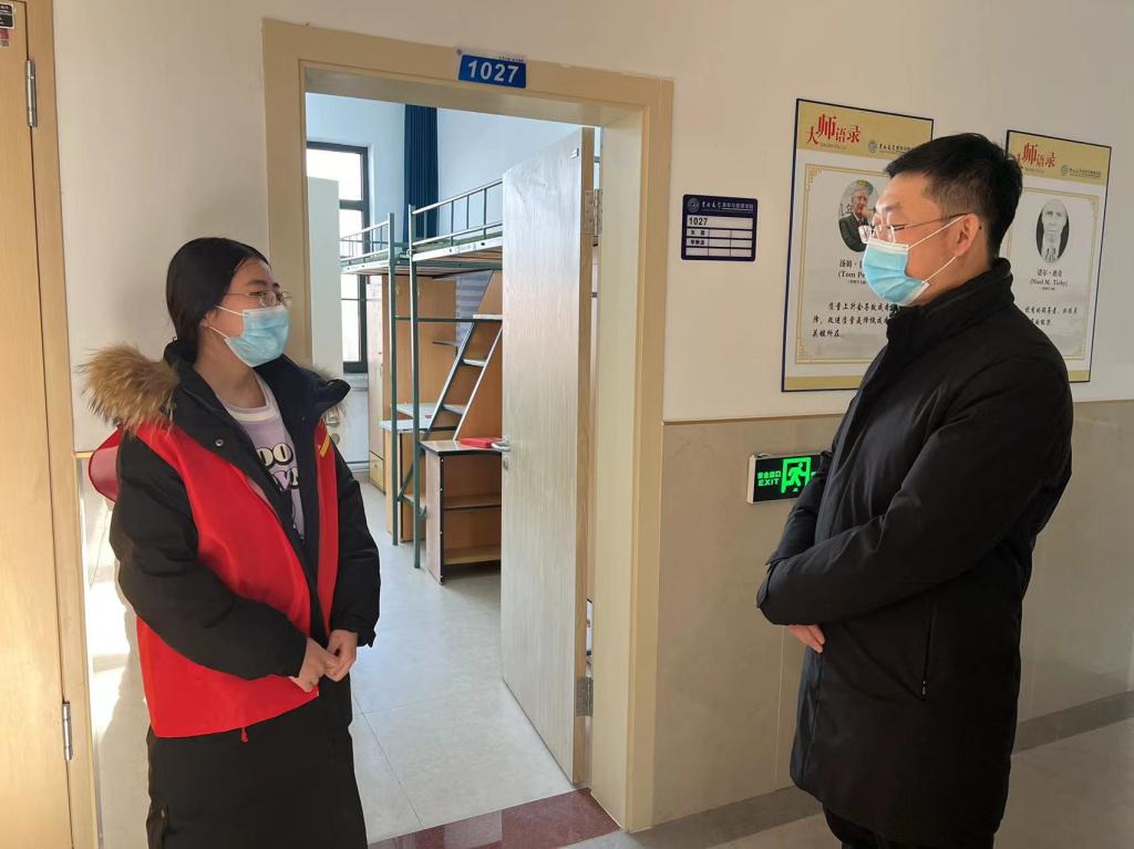 2022年2月24日下午,党委研究生工作部部长赵玥、副部长邵俊涛来到中心校区北苑四公寓,慰问正在搬迁的伟德官网南岭校区研究生。赵玥部长对研究生搬迁情况进行详细了解,与同学们亲切交谈。