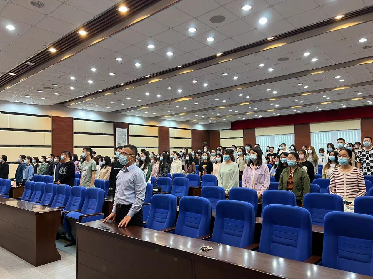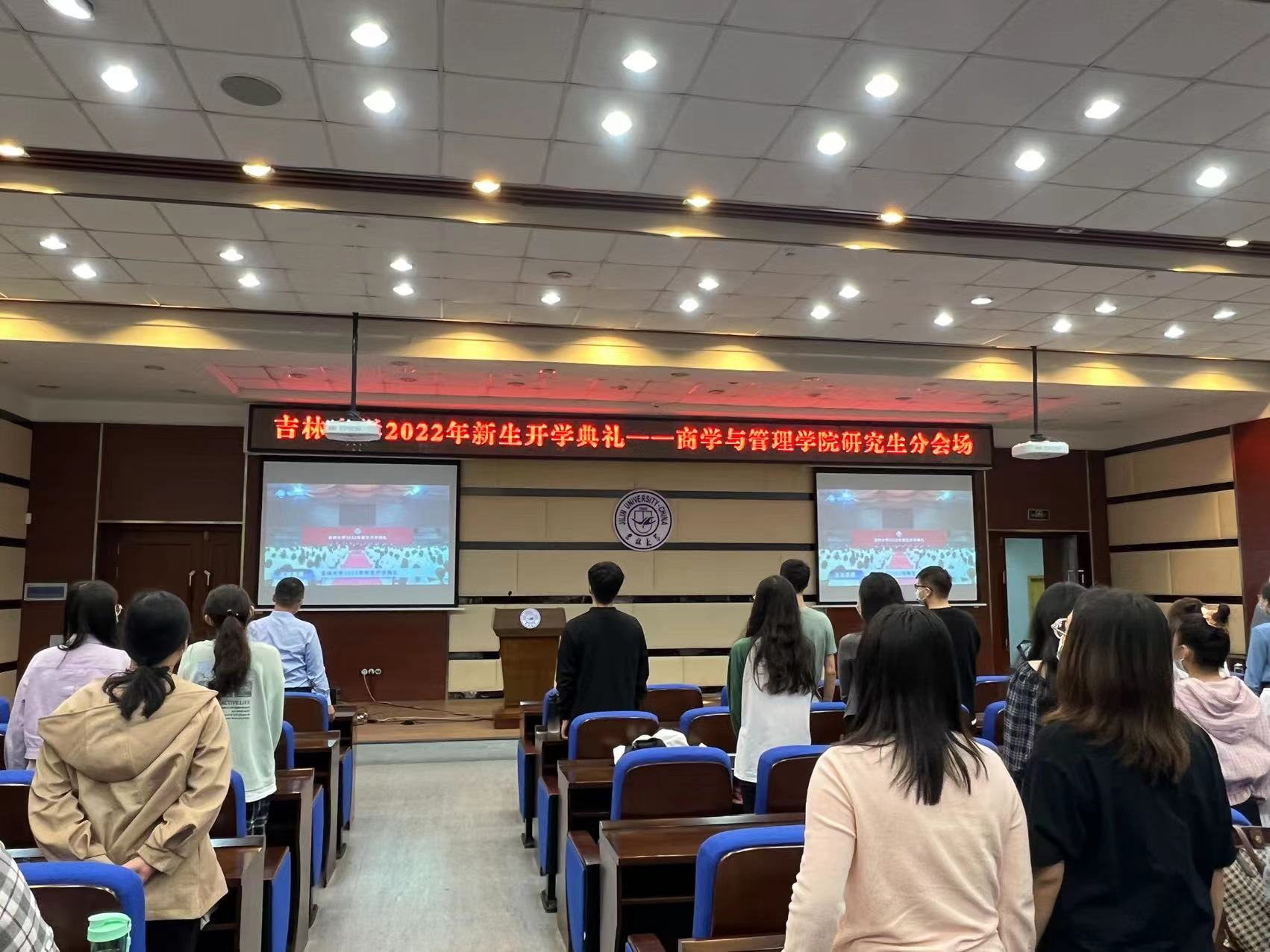 2022年9月15日上午8点,2022年新生开学典礼在中心校区宋治平体育馆举行,伟德官网院组织2022级研究生在开学典礼分会场东荣大厦B310会议室观看开学典礼线上直播。商学与管理公司党委副书记马腾,研究生辅导员甄宓以及全体2022级研究生新生参与此次开学典礼。