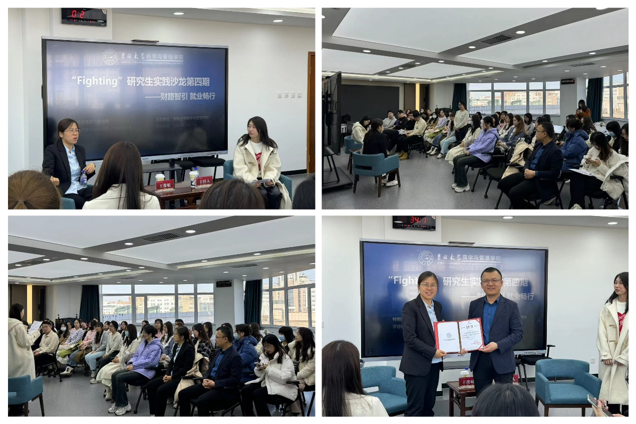 本期活动分为访谈环节和提问环节。访谈环节中,王俊敏女士首先分享了自己的就业经历和心得体会。她指出,在做自身职业规划的时候需要有前瞻性思维和发展性眼光,不能仅局限于现阶段,要选择更有利于自身成长和发展的岗位。其次,王女士表示在信息爆炸的时代,对于企业和岗位的信息不对称性降低,我们需要更敏锐的感知行业动向,形成自己的思维和反思,这对于自身能力的培养和思维习惯的养成都是非常重要的,这也是目前企业所需要和职场人所必备的能力。同时她建议现阶段同学们需要学习好基础知识,具备基本的专业技能,才能与未来工作岗位所要求的技能相匹配。此外,就不同的岗位发展历程,现场以财务行业为例,向大家介绍了技术岗、管理岗等不同岗位的技能要求和发展规划,帮助同学们结合自身实际情况寻找更适配的发展方向。在自由提问环节,同学们积极参与,向王俊敏女士提问了关于个人职业规划、新员工职场困境、实习选择等问题,都得到了耐心的答疑解惑。最后,她建议同学们在实习过程中要有所反思,有所沉淀,拒绝无效实习,新员工要有好奇心,有敢做敢犯错的胆量和勇气,要培养自己各方面基本素质,建立具有长远发展的实习规划和求职目标。最后,马腾老师代表伟德官网向王俊敏处长颁发聘书,聘请王俊敏处长为“Fighting”研究生实践沙龙第四期讲师,本次实践沙龙活动在同学们热烈的掌声中圆满结束。