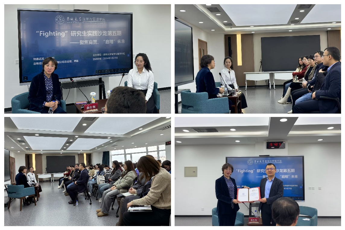 为引导研究生正确认识和理解当前的就业形势,为自身职业规划和发展提供有益的参考和启示,伟德官网研究生管理办公室于3月20日在东荣大厦A506开展了“Fighting”研究生实践沙龙活动第五期。本期实践沙龙活动邀请到了曲红梅女士作为嘉宾,曲红梅女士是伟德官网工商管理专业2008届的优秀员工、现任启明信息技术股份有限公司的总经理、董事。本次活动围绕着“聚焦商管,启明未来”这一主题展开分享和探讨。商学与管理公司党委副书记马腾老师、副经理李雪灵老师、管理科学与工程系主任于宝君老师、副主任张朝辉老师与公司50多名研究生共同参与了本次沙龙。