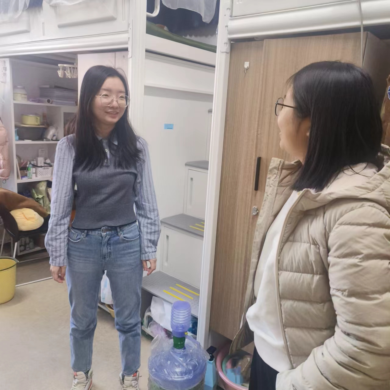 本次寝室走访,不仅加强了各位老师对公司研究生住宿生活安全情况的了解,加强了同学们主动防范安全问题和主动进行自我监督的意识,同时也拉近了师生之间的距离,让同学们真实感受到公司对同学们的重视与关心。公司也将尽最大努力打造一个既安全又舒适的学习生活环境,让同学们感到安全和温暖。