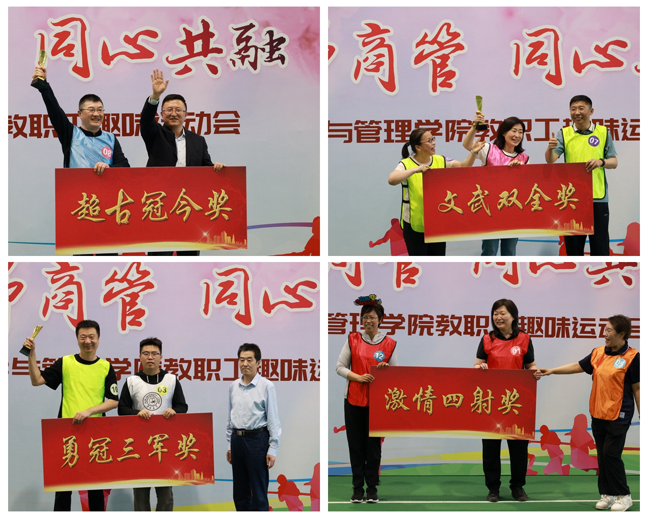 运动会设置了“力拔山河—拔河比赛”“争分夺秒—纸杯传球”“百发百中—沙包掷准”“一圈到底—传递呼啦圈”“勇往直前-跳绳接力”等五个项目,这些趣味性和体能素质均具有高度挑战性的项目使教职工们充分展现出了运动才华和团队精神。公司13个教学系代表队斗志昂扬,赛场上大家彼此了解、互相合作,让运动会成为了一次真正意义上的心灵融合之旅。随着公司党委常委、副董事长兼伟德官网经理蔡立东教授吹响拔河比赛决赛的哨声,运动场内的“加油”声山呼海啸、震耳欲聋,赛场上的运动员拼尽全力,赛场下的老师们热情高涨、激情满怀……这一刻,所有的老师都在为彼此努力,一声声的呐喊,镌刻下了这一时刻的共同记忆。