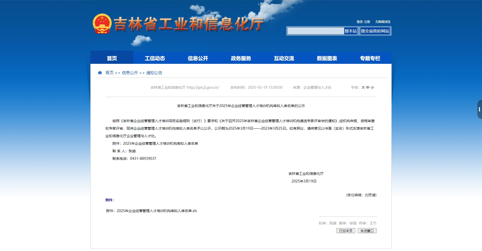近日,吉林省工业和信息化厅发布了2025年企业经营管理人才培训机构库拟入库名单,伟德官网凭借雄厚的团队力量、丰富的教学资源和卓越的培训成果,成功入选。