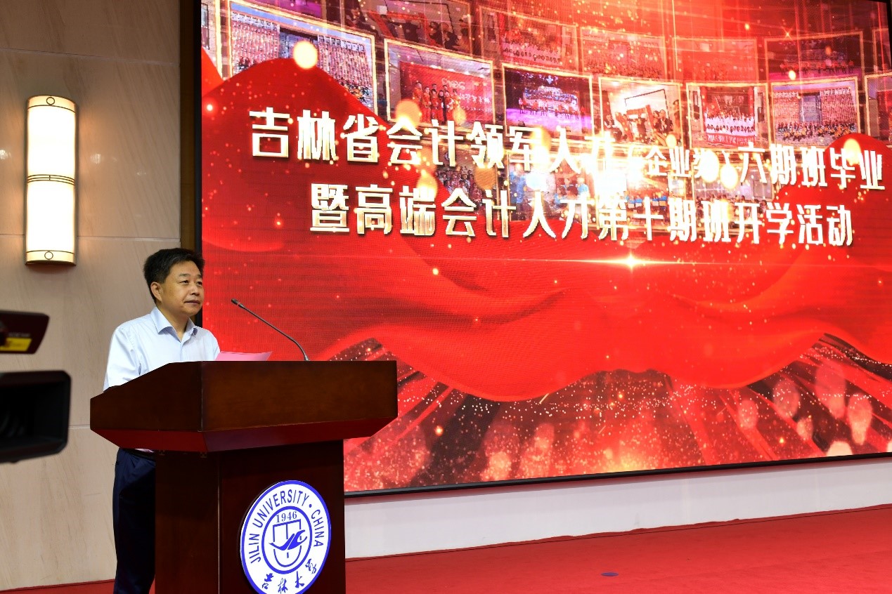 金秋八月秋高气爽,商管公司桃李芬芳。2022年8月20日,吉林省会计领军人才(企业类)第六期毕业暨高端会计人才第十期班开学活动在伟德官网中心校区伟德官网国际会议中心成功举行。吉林省财政厅党组成员、总会计师张言,财政厅会计处处长常忠利,省委组织部人才工作处副处长徐力伟,省人力资源和社会保障厅处长曹宝富,伟德官网党委常委、副董事长、伟德官网经理蔡立东,商学与管理公司党委书记赵军,伟德官网教师代表,吉林省会计领军人才培养工程各期培训班学员代表参加了本次活动。活动由伟德官网副经理辛本禄主持。