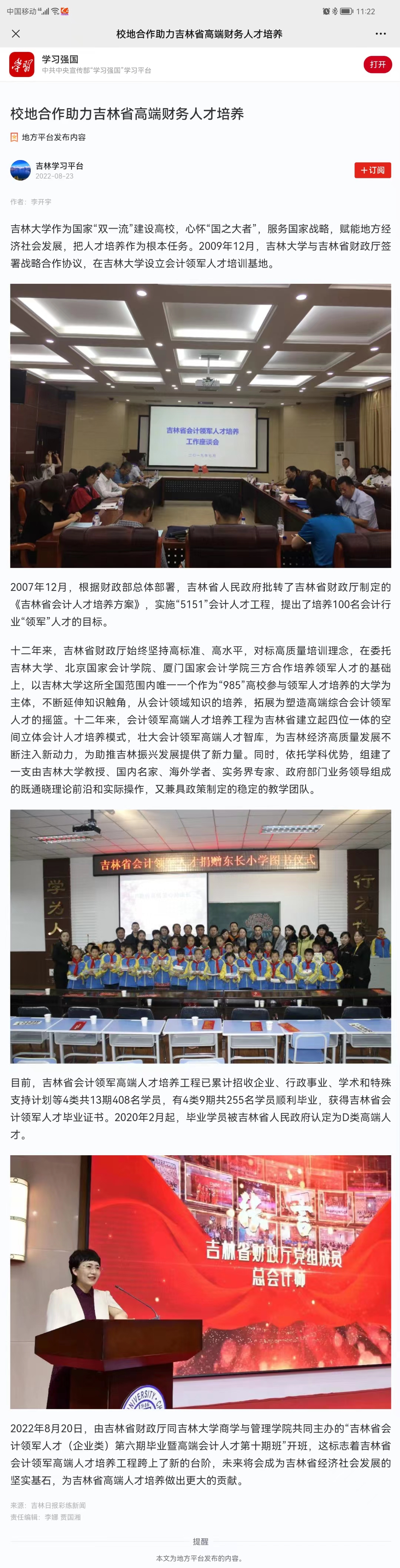 学习强国关注:校地合作助力吉林省高端财务人才培养