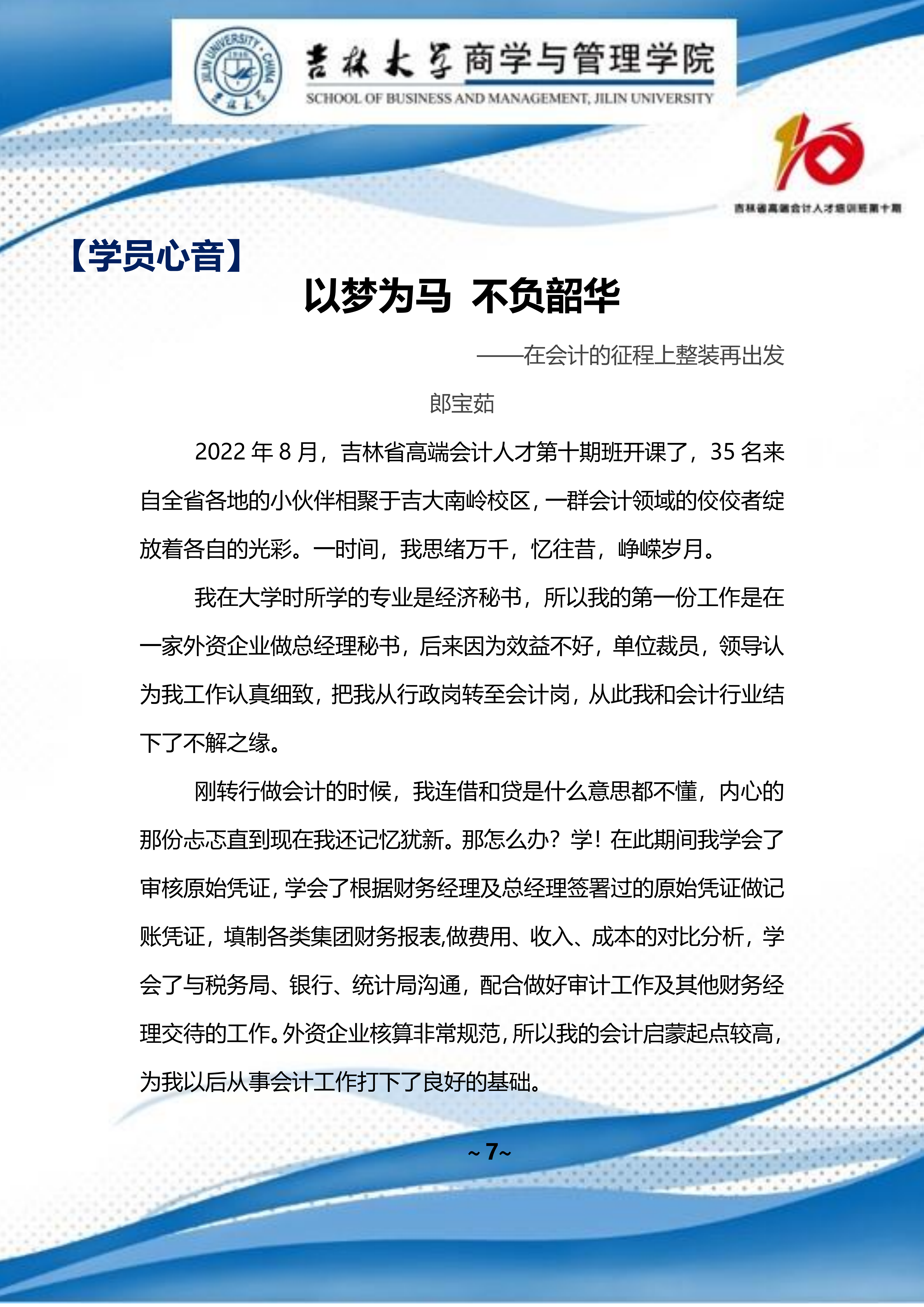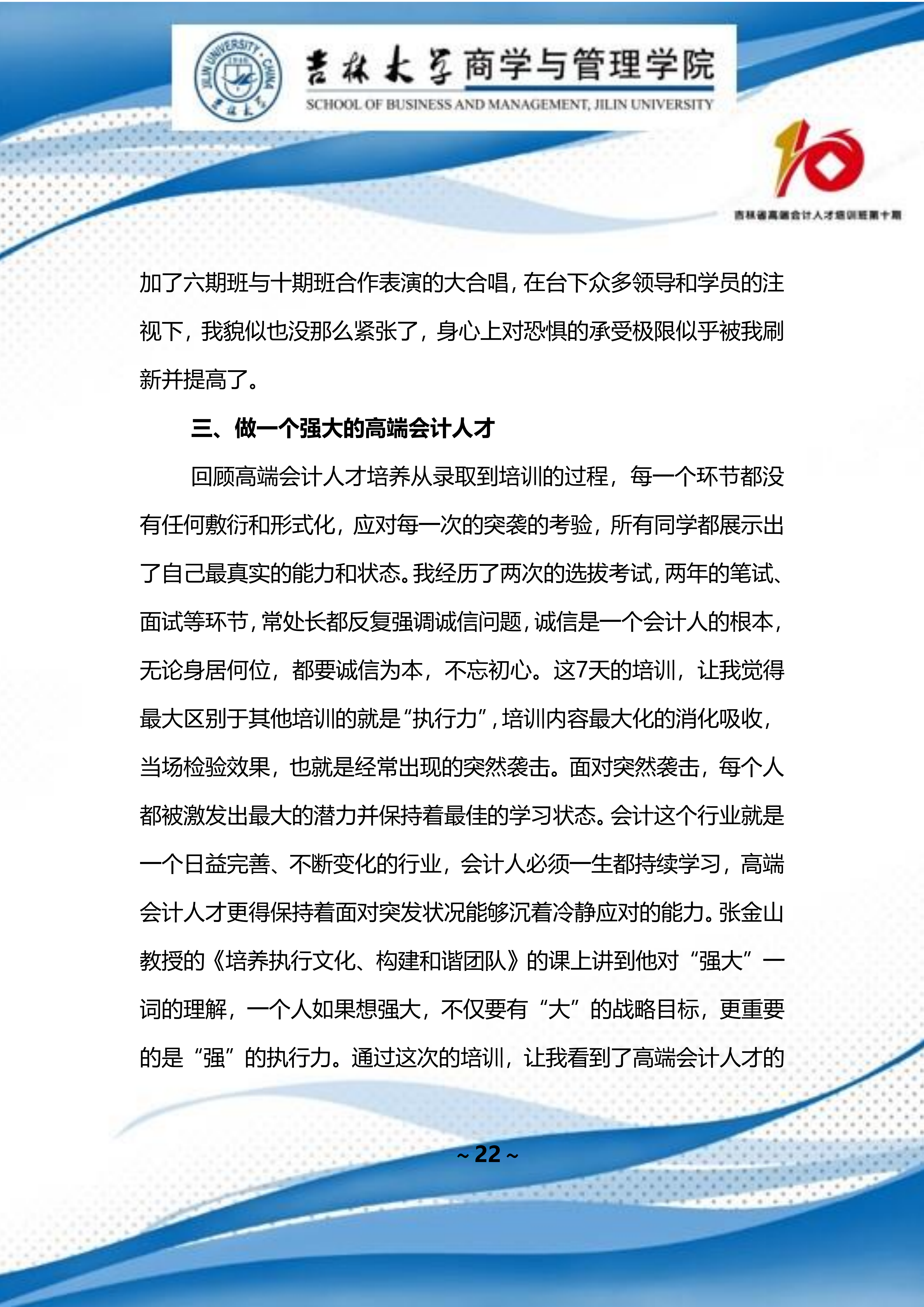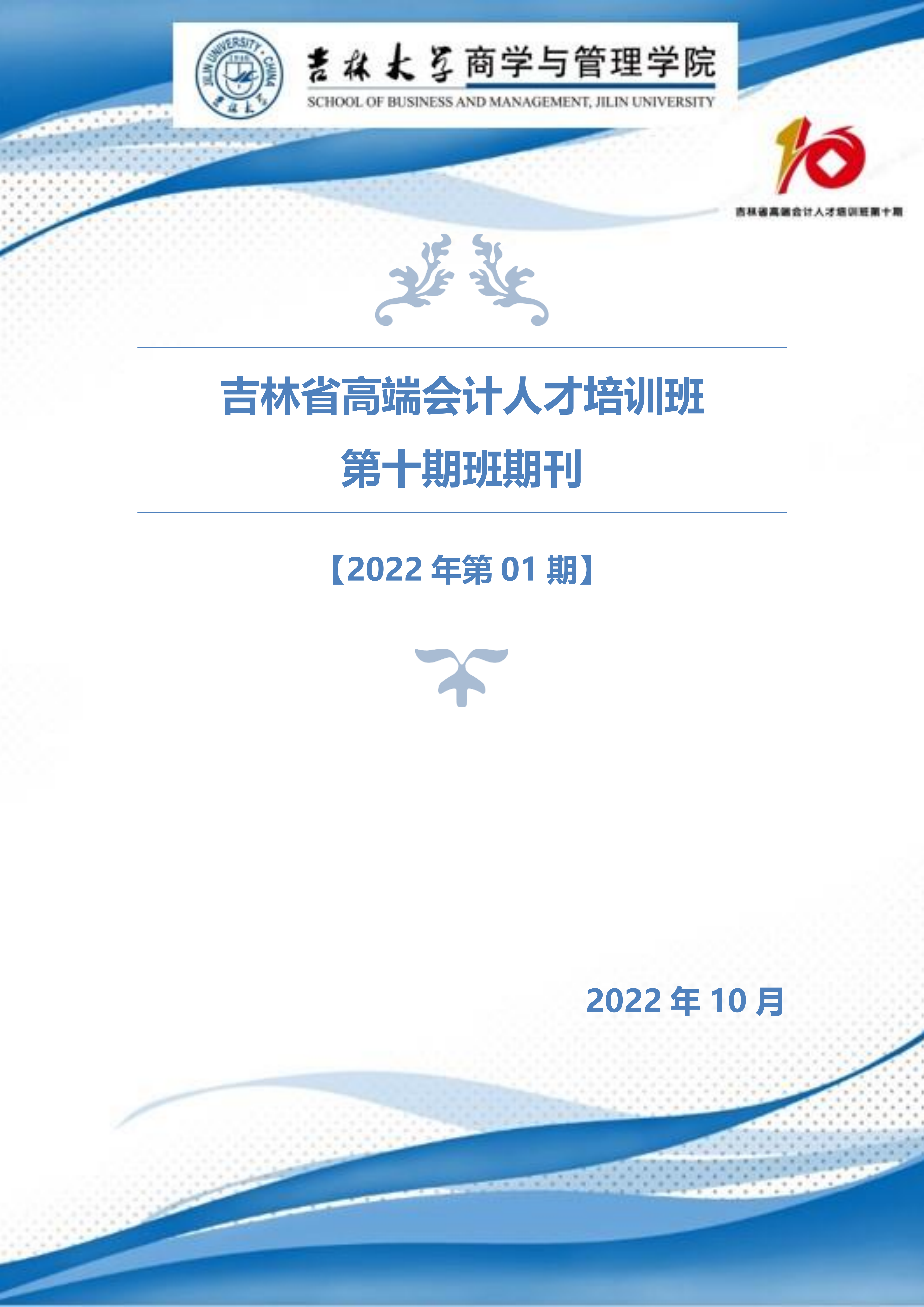 吉林省高端会计人才培训班 第十期班期刊 【2022 年第 01 期】