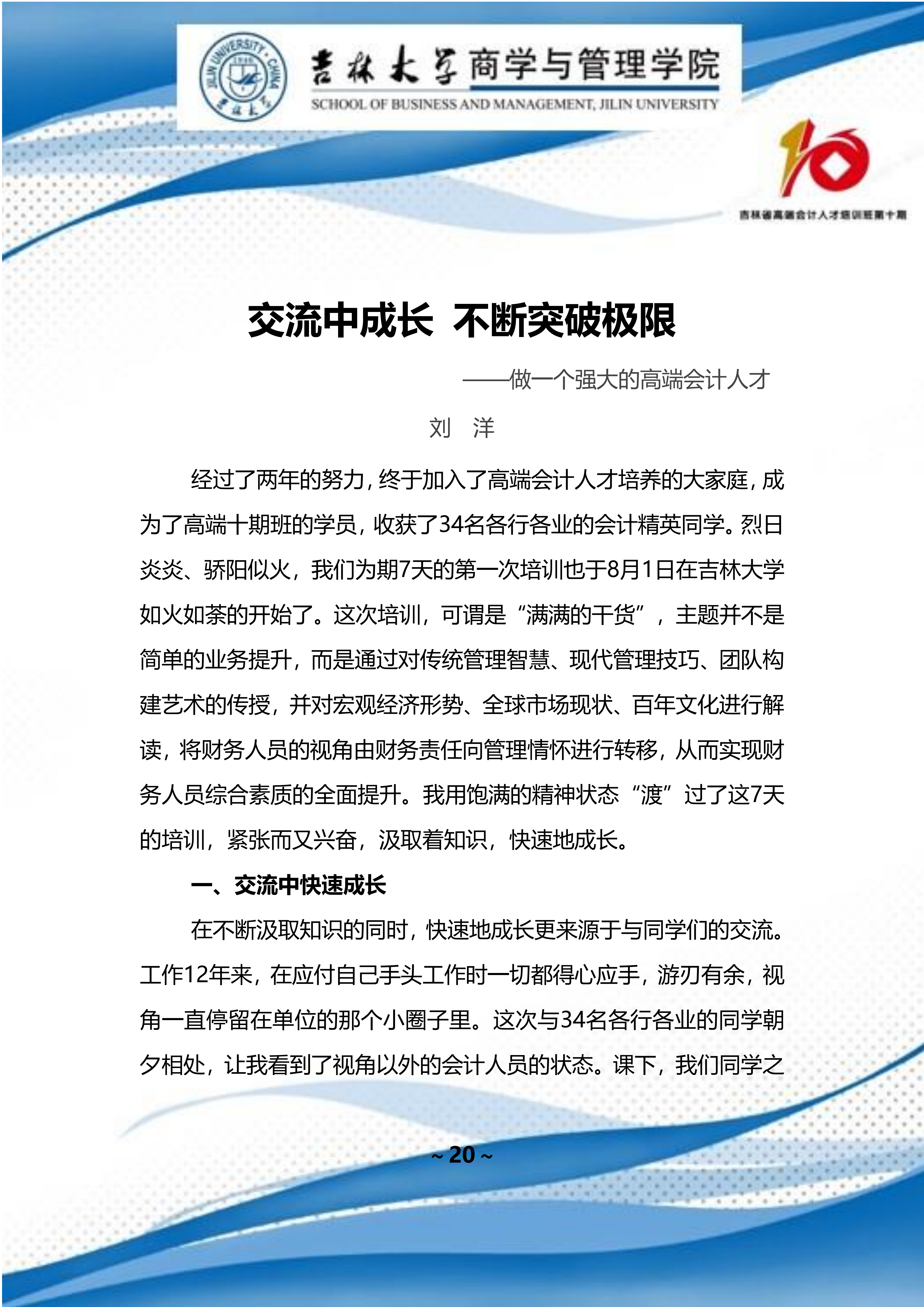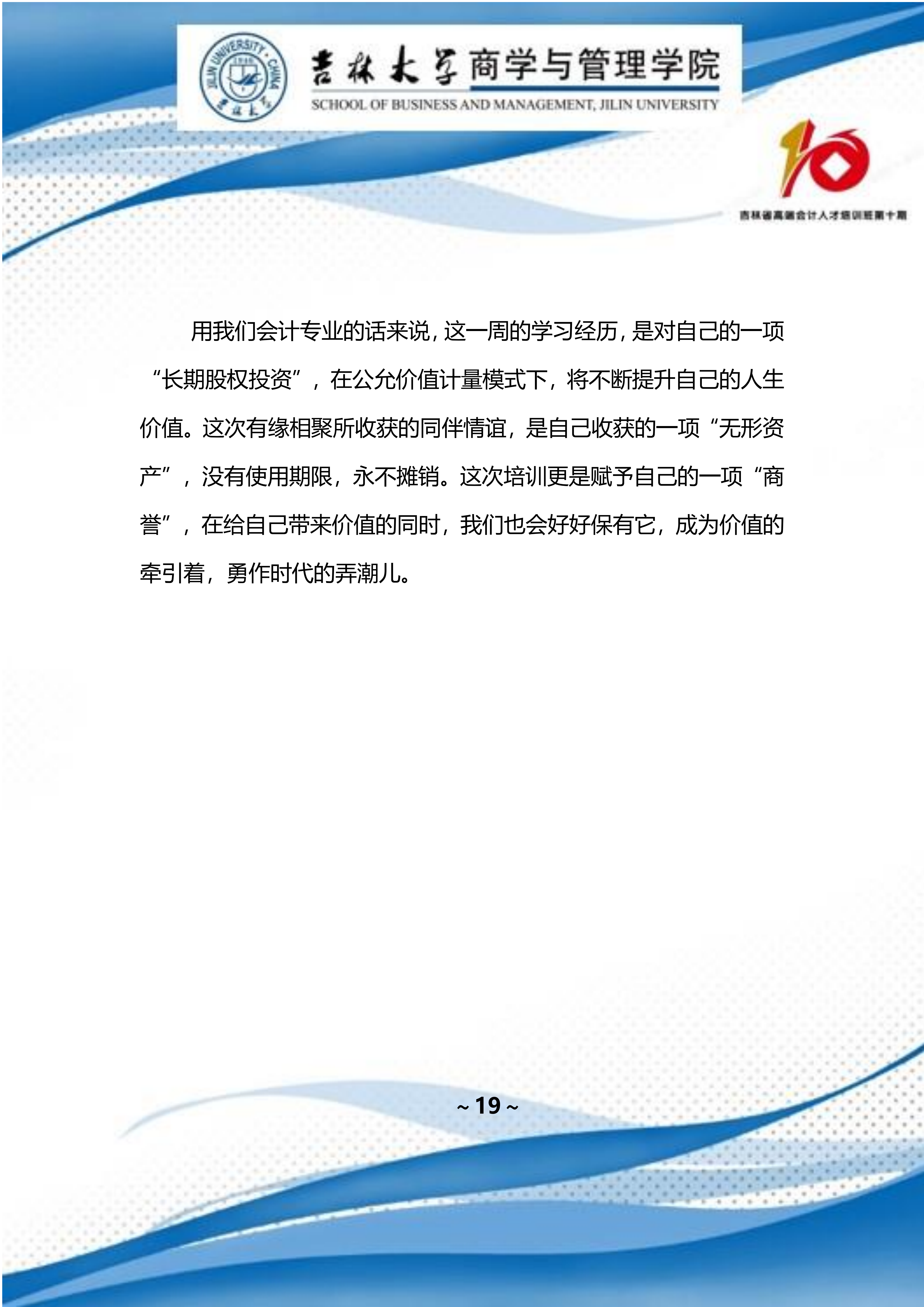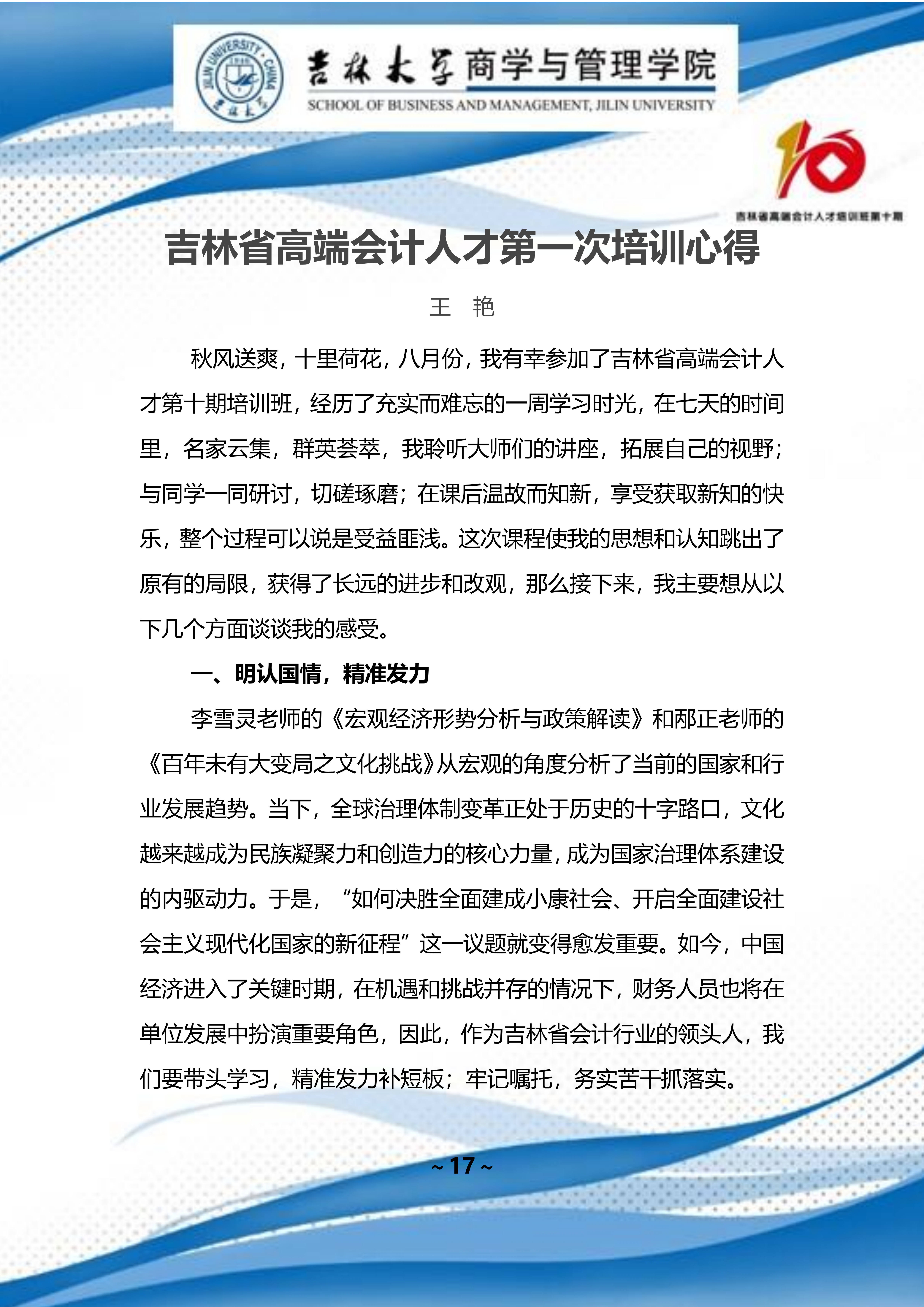 吉林省高端会计人才培训班 第十期班期刊 【2022 年第 01 期】
